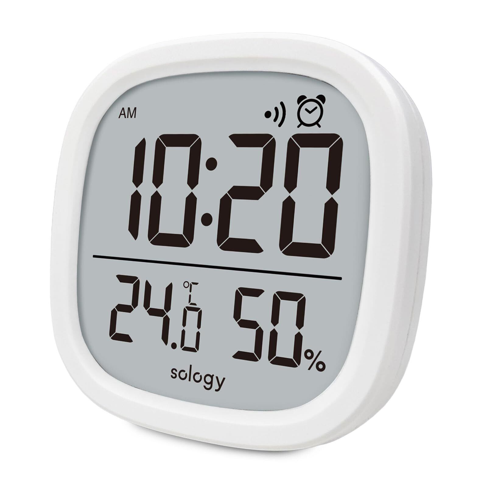 sology(ソロジー) 温湿度計 ウイルス対策 コンパクト 大きな時計表示 温度 湿度 時報 アラーム 日付 カレンダー 熱中症対策 卓上 マグネット シンプル 角丸型 ホワイト