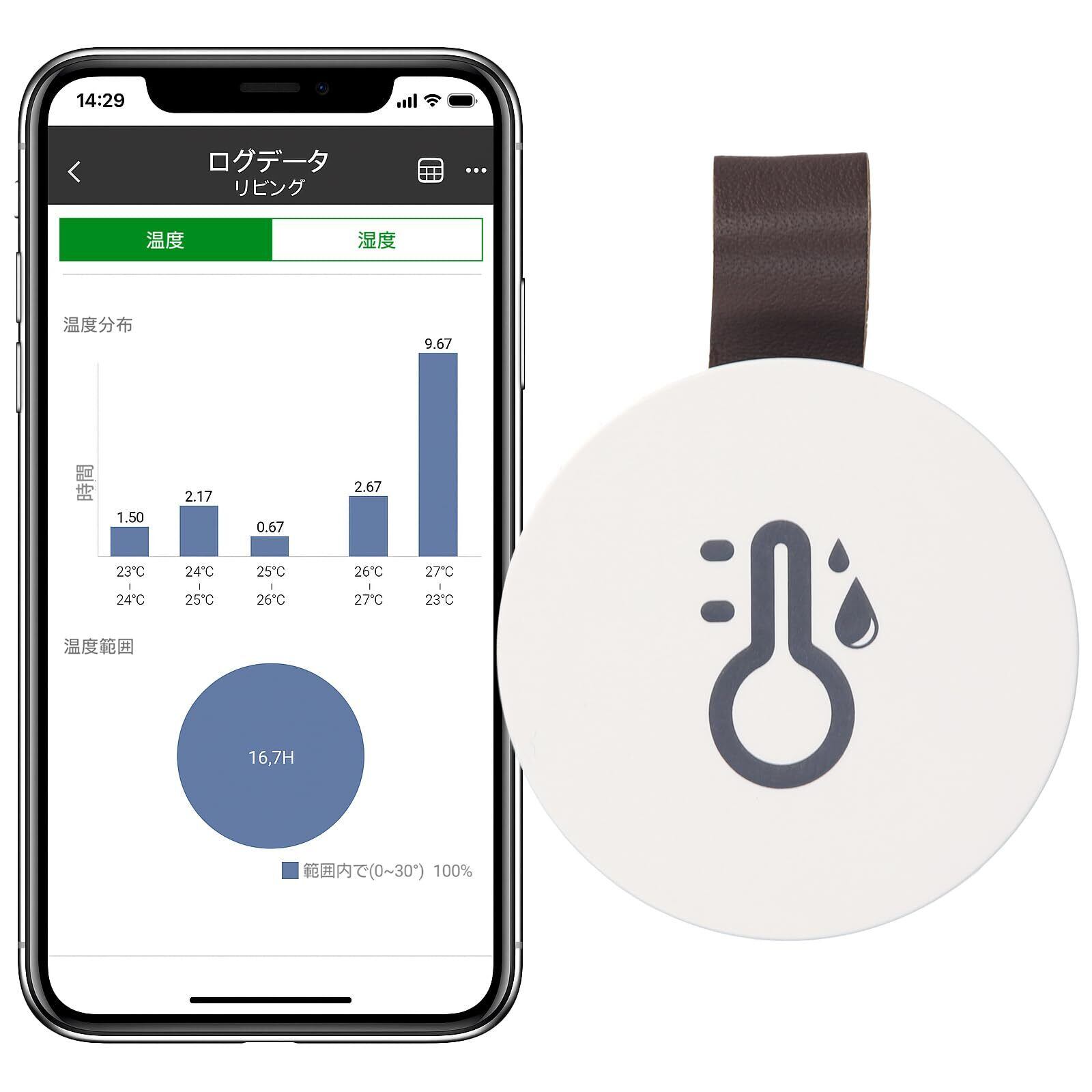 スマート温湿度計 Bluetooth デジタル温湿度計 スマートフォン対応 スマートセンサー データ保存機能対応 コンパクトな丸形(1個)