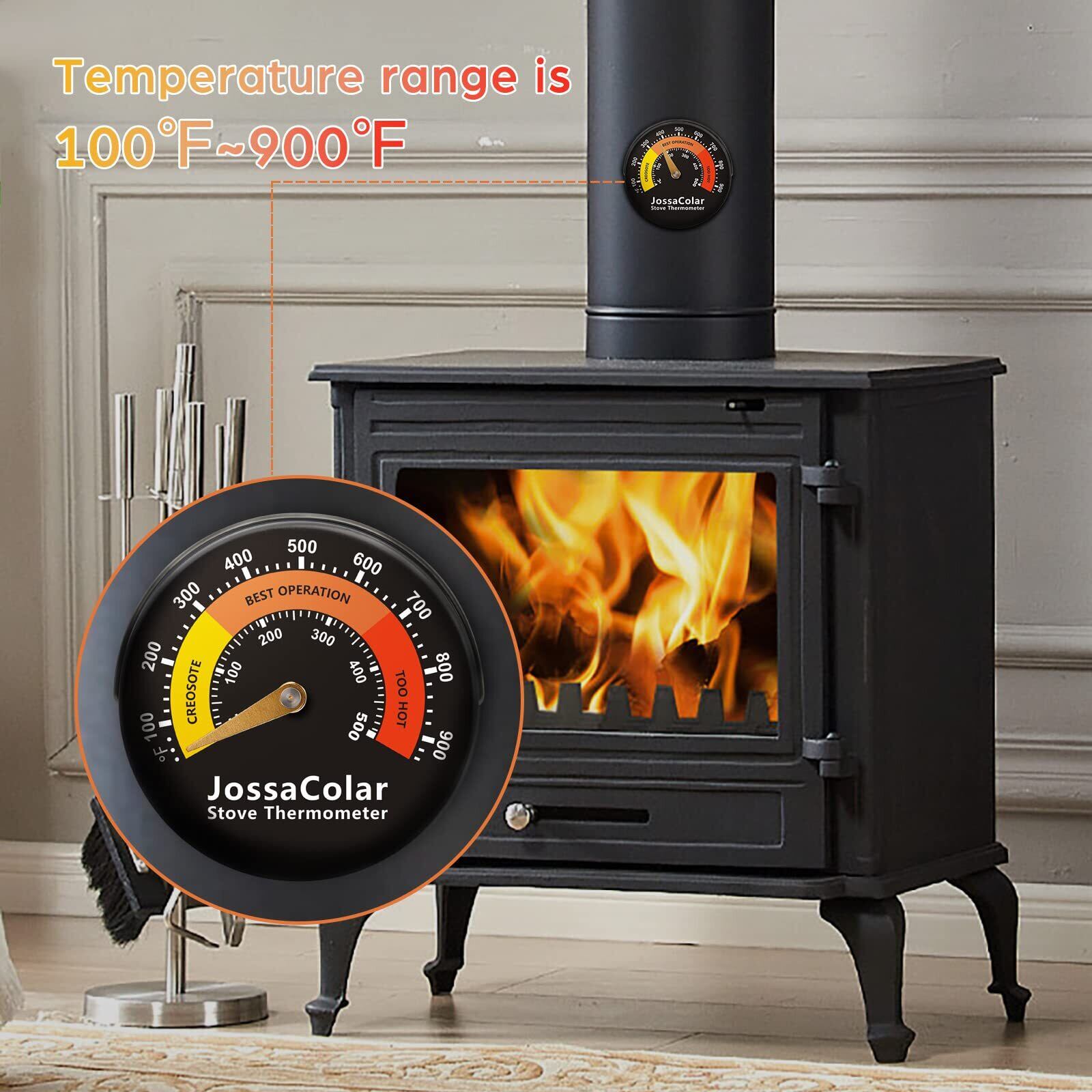 【ストーブの燃焼効率をモニター】Jossacolarの薪ストーブ温度計は、ストーブの上部またはパイプに設置して、暖炉の温度を正確に監視し、薪ストーブの燃焼効率を最適化するのに役立ちます。 木材を追加したり、火を打つことを思い出させます。