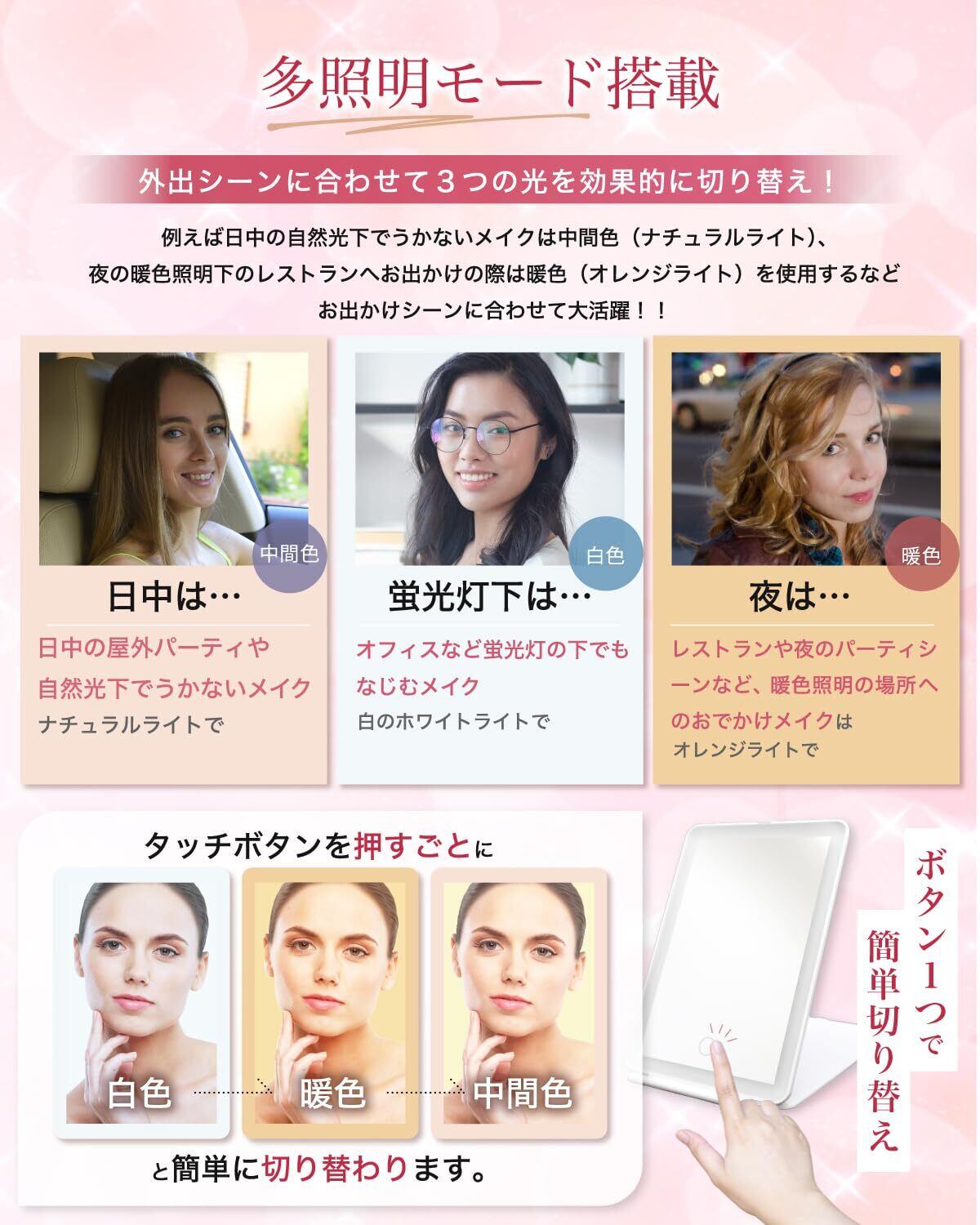 【メイクアップアーティスト監修LEDライト付化粧鏡】充電式で持ち運びに◎いつでも女優気分でメイクが出来る卓上ミラー 鏡 卓上鏡 女優ミラー 多照明モード搭載&無段階光量調整【WIDREAM】