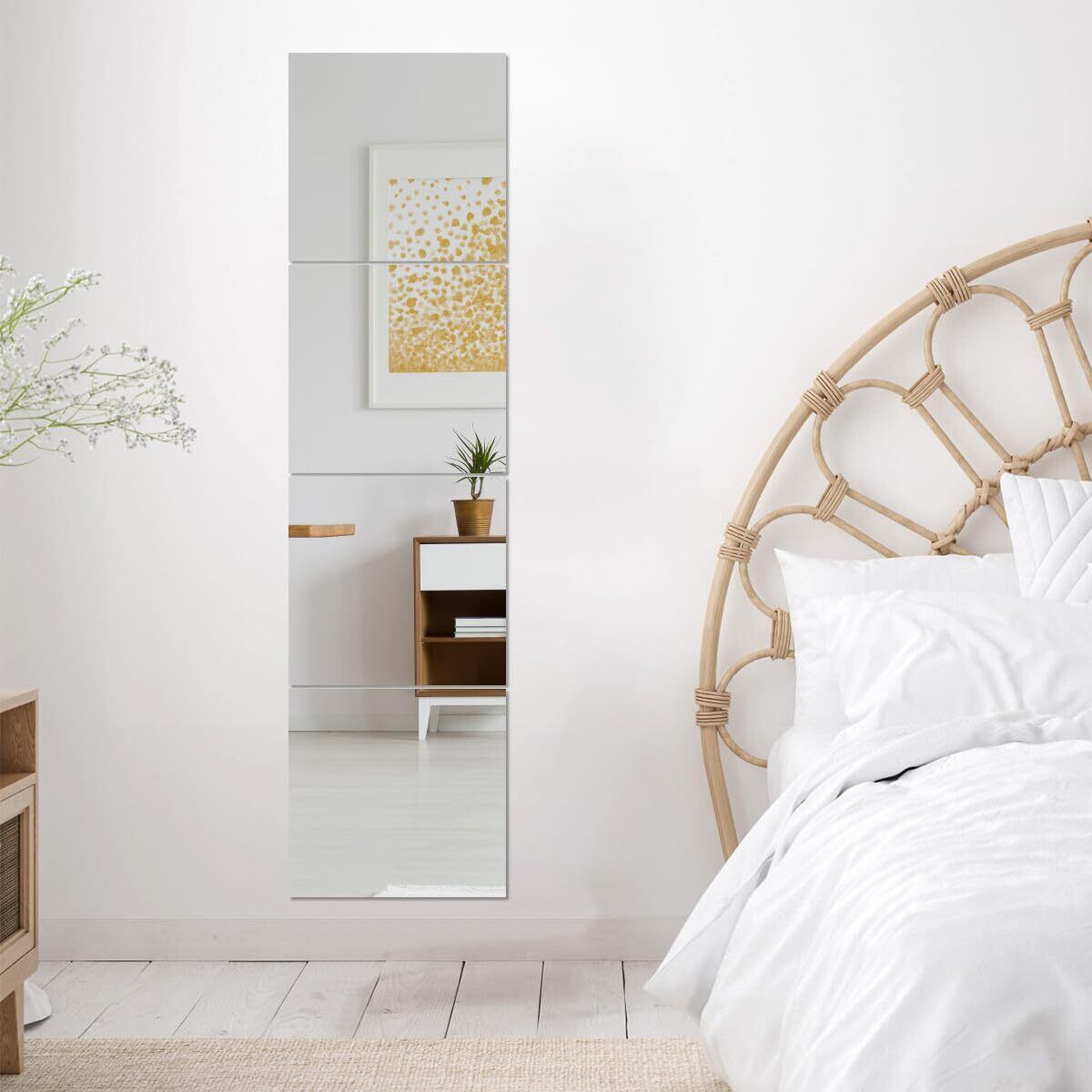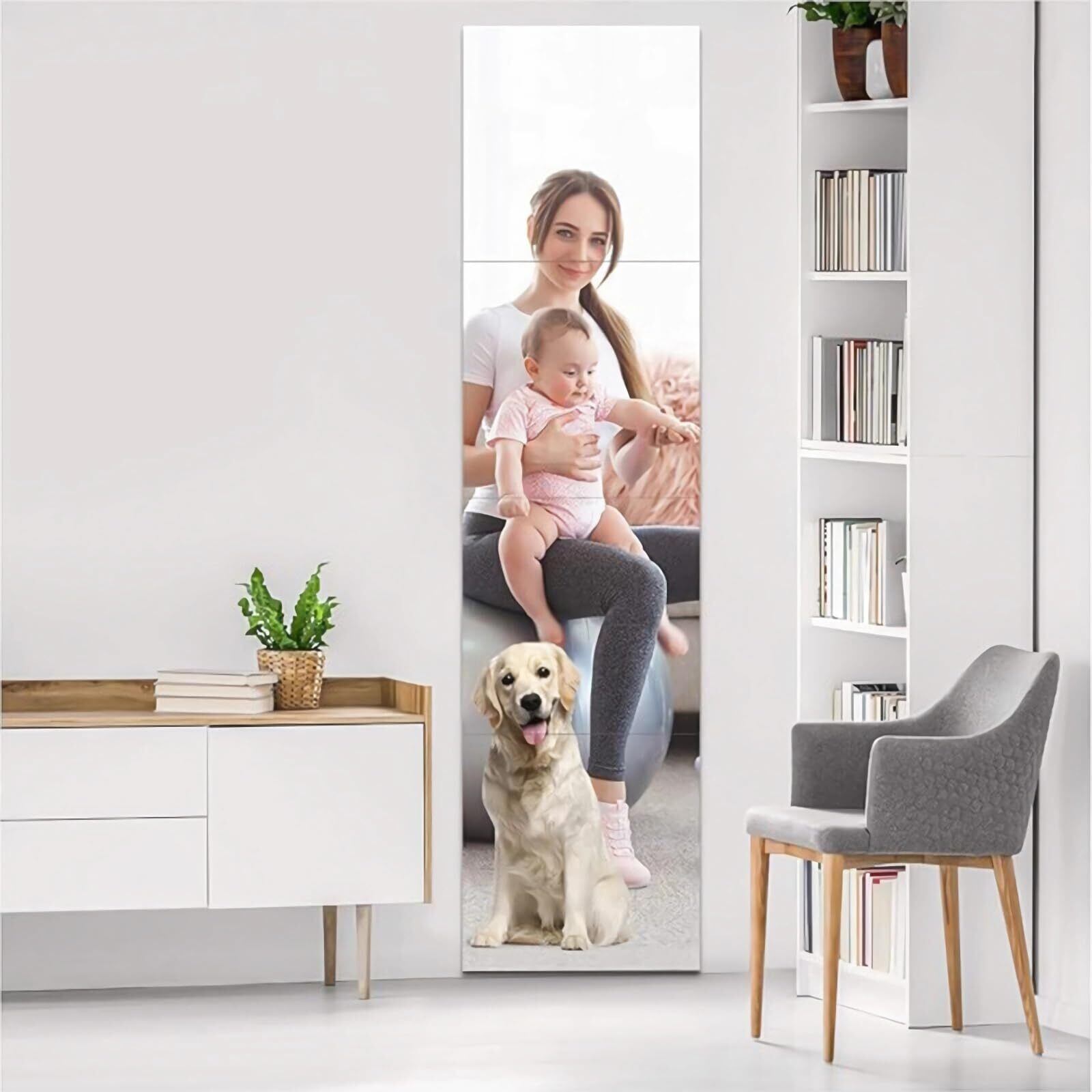 全身鏡 姿見鏡 どこでも貼れる割れない鏡 壁掛け ミラー 貼る鏡 アクリルミラー 飛散防止 穴あけ不要 便利 軽量 浴室 玄関 壁 リビング クローゼット (30×30cm 4枚セット)