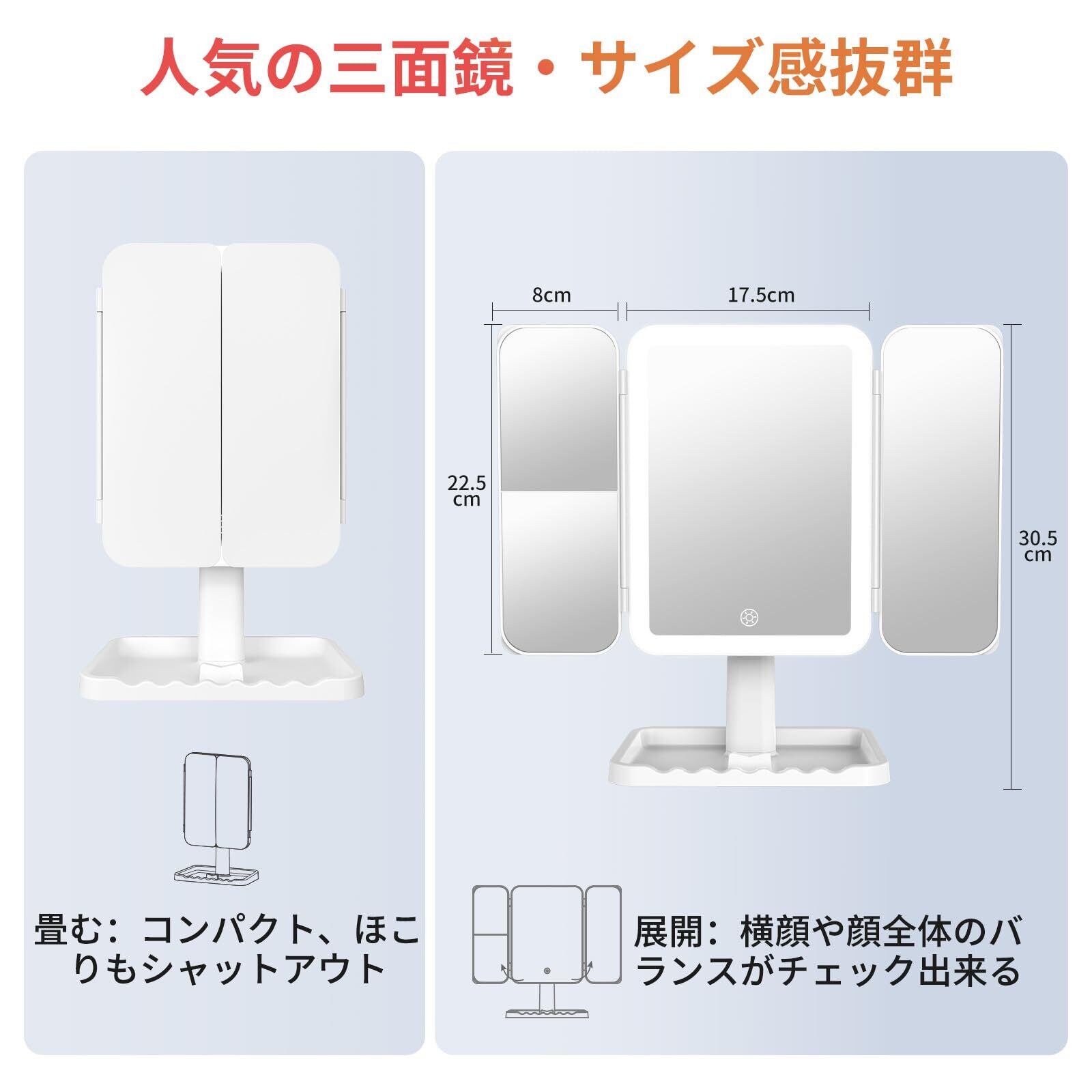【360°自由回転・収納スペース付き・スマホスタンド付き】:このLEDライト付き鏡は360°回転できます、上下左右自由に調整できます。アイメイク時、鏡が傾けて使えると便利です。なお、三面鏡は収納台座が付きなので、ヘアピン、イヤリング、まつげ、口紅など小物の収納には最適、スマホスタンドも付き、化粧する時メイクチュートリアルなどのビデオを見ることができます。