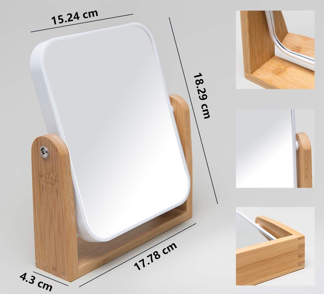 YEAKE 鏡 卓上 ミラー かがみ 拡大鏡 360度回転できる天然木製ベースの化粧鏡、倍率は1 X/3 Xの拡大鏡&両面鏡です&スタンドミラー (長方形) 竹と白