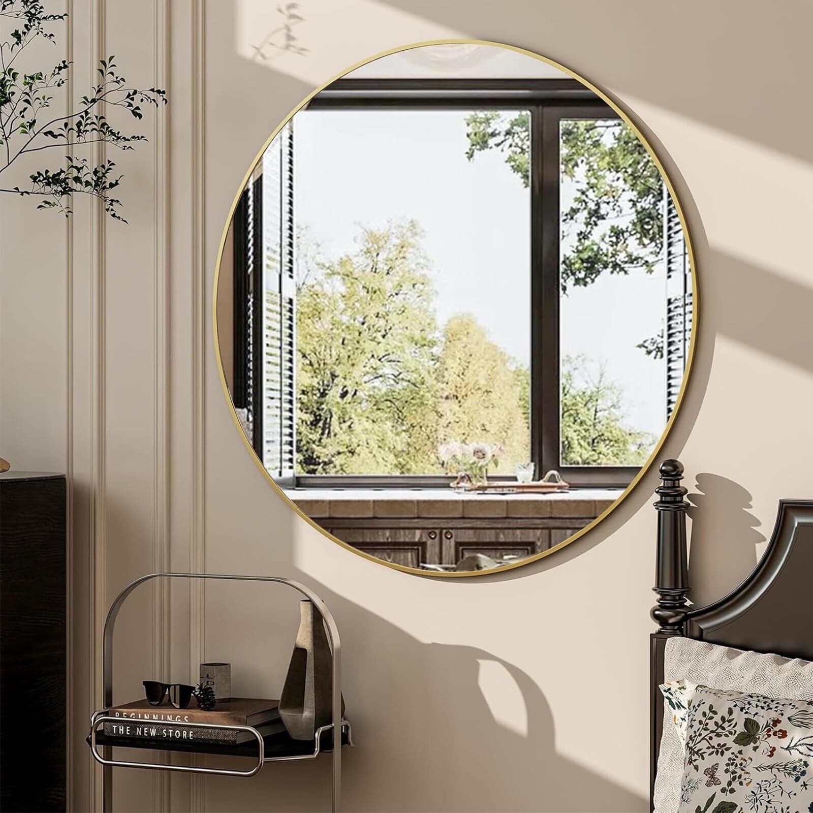 Genjitsu 鏡 壁掛けミラー 丸鏡 壁掛け鏡 洗面台 鏡 壁 洗面鏡 浴室 玄関 洗面所 鏡 化粧鏡 かがみ 円形 鏡 壁掛け 丸(ゴールド,直径30cm)
