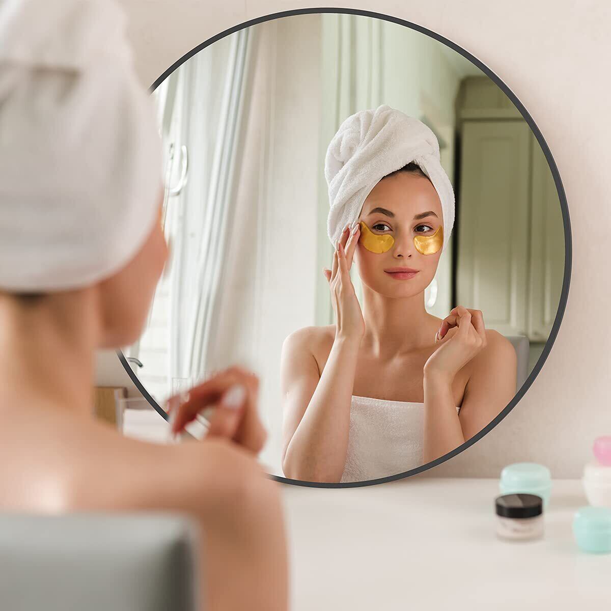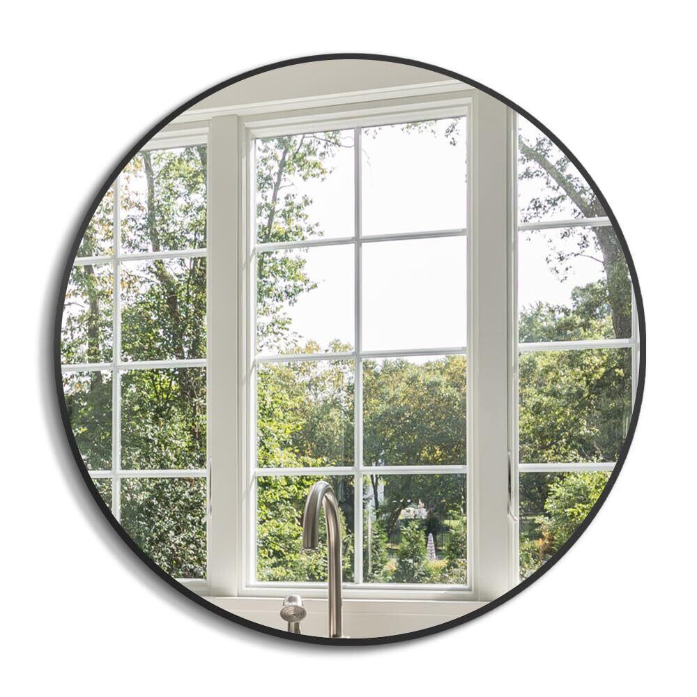 ANYHI 壁掛け鏡 浴室鏡 玄関鏡 丸型 壁式 鏡 洗面 玄関 おしゃれミラー ウォールミラー 壁飾り 化粧 メイク (ブラック,円形直径60cm)
