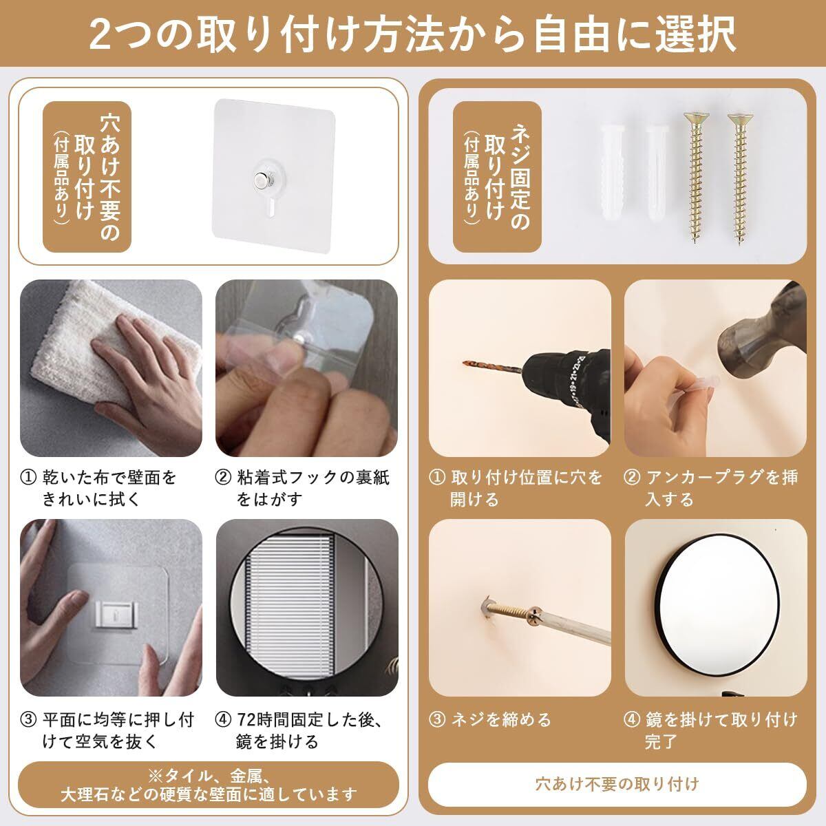 【取り付け簡単】ウォールミラーは、取り付け用金具をあらかじめ装備し、届いてすぐに設置可能。石膏ボードなら付属のピンで穴を気にせず固定できます。作業時間はわずか5分!工具を最小限に抑えた簡単設計で、一人暮らしの方や女性でもスムーズに取り付けられます