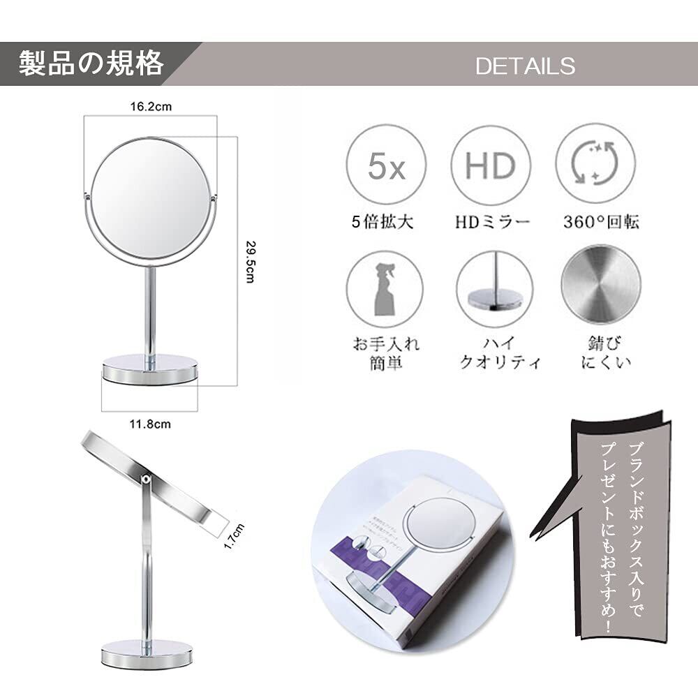 ❂本製品は両面鏡です。片面は5倍鏡になっています。 ※5倍拡大鏡は鏡に顔を15cm前後まで近づけて、焦点を合わせてご使用ください。