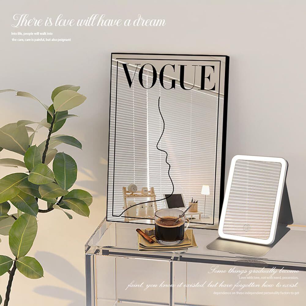Cerdeco 折りたたみミラー LED化粧鏡 卓上ミラー 手鏡 USB充電式 タッチパネル操作 明るさ調節可能 女優鏡 スタンドミラー 持ち運びに便利 シンプルデザイン メイクアップ コンパクト PUレザーカバー ホワイト S809