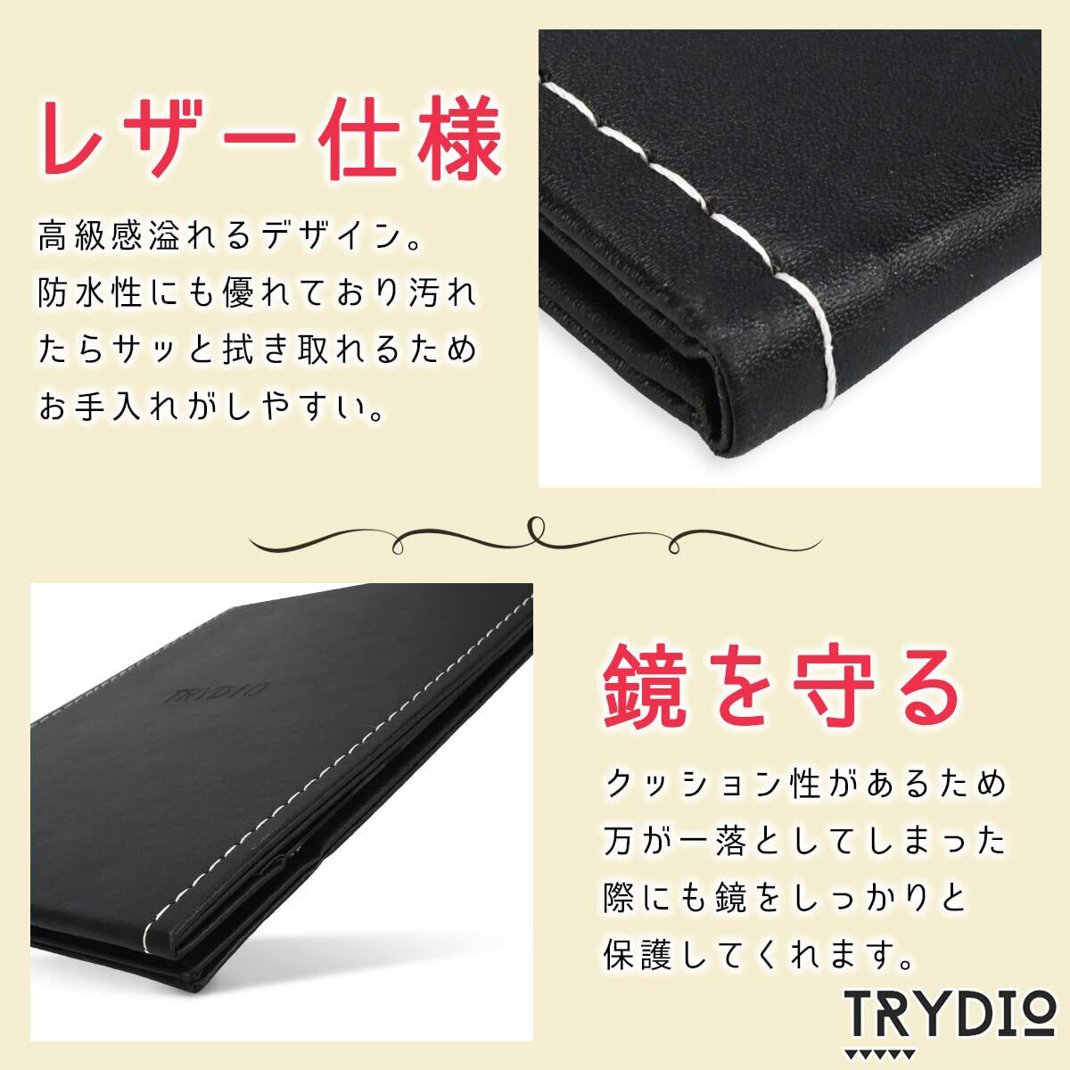 カバー部分には高級感があり肌触りのいい黒のPUレザーを採用。防水性に優れ、汚れや水気が付いた場合はサッと拭き取れるためお手入れしやすいのも魅力です。万が一鏡を落とした時も衝撃を吸収し鏡面を保護してくれます。