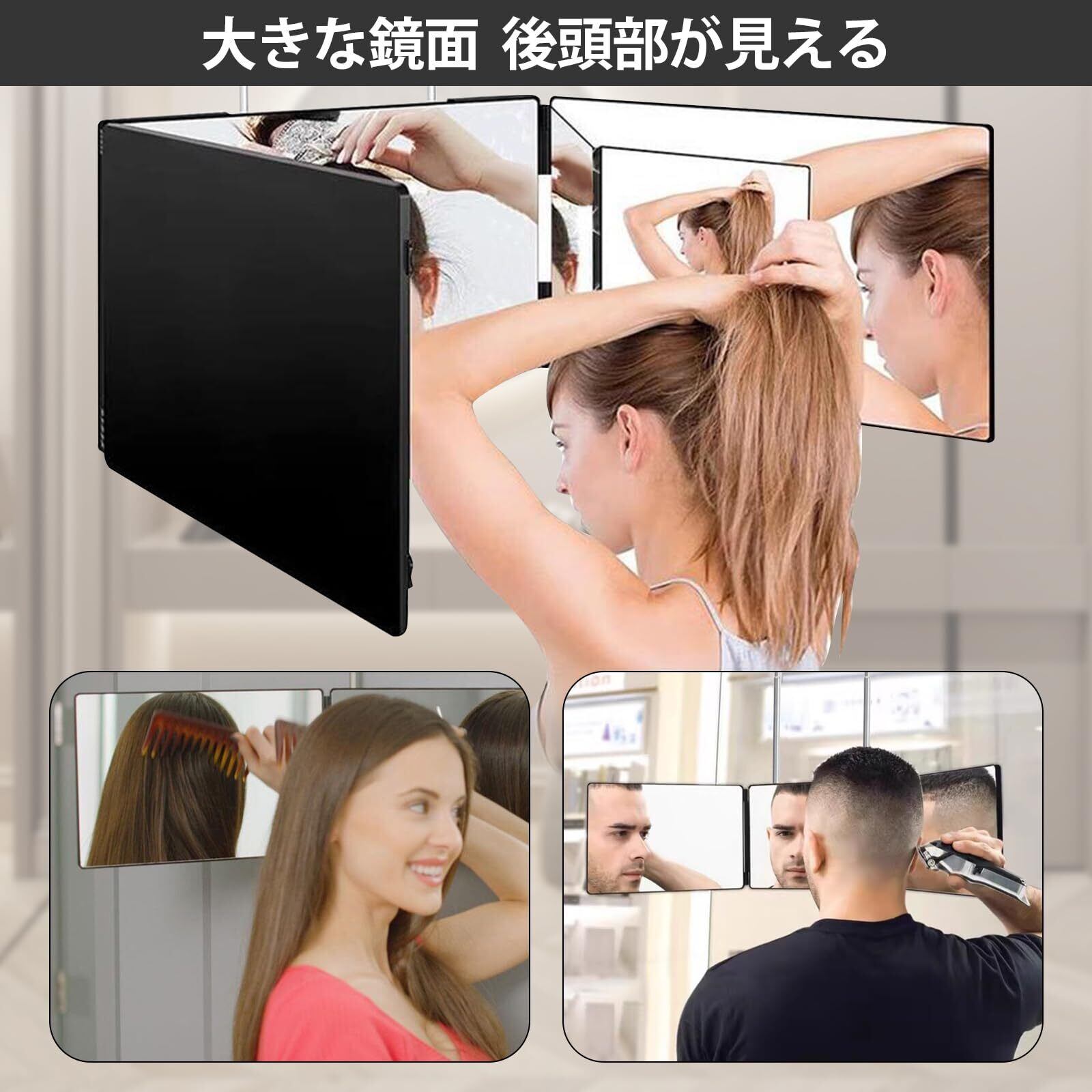三面鏡 セルフカット 360°角度自在調整 化粧鏡 高さ調節可能 鏡 壁掛け 折りたたみ可能 mirror 5倍拡大鏡付き 3ウェイミラー 後頭部が見える 壁掛けミラー HD鏡面 かがみ 大きい 安定して使い 飛散防止 (ブラック)