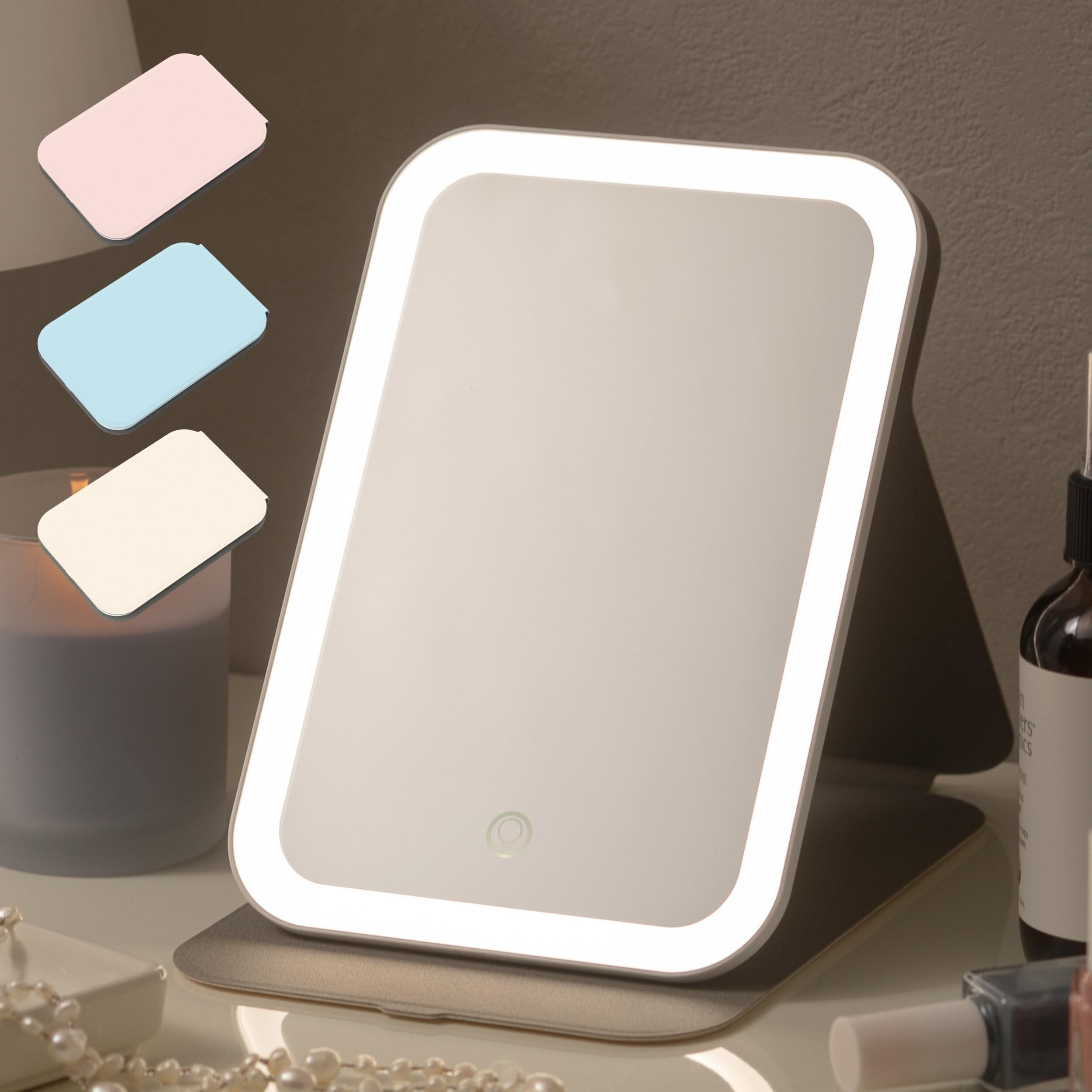 【かわいい・多機能】両面をPUレザーでカバーし、おしゃれでかわいい外観としました。リチウムバッテリー内蔵・明るさ無段階調光・3光色切り替え(昼光食/昼白色/電球色)・自動消灯・前回光量メモリ機能・マグネット開閉など、楽しくご利用頂ける多機能ミラーです。
