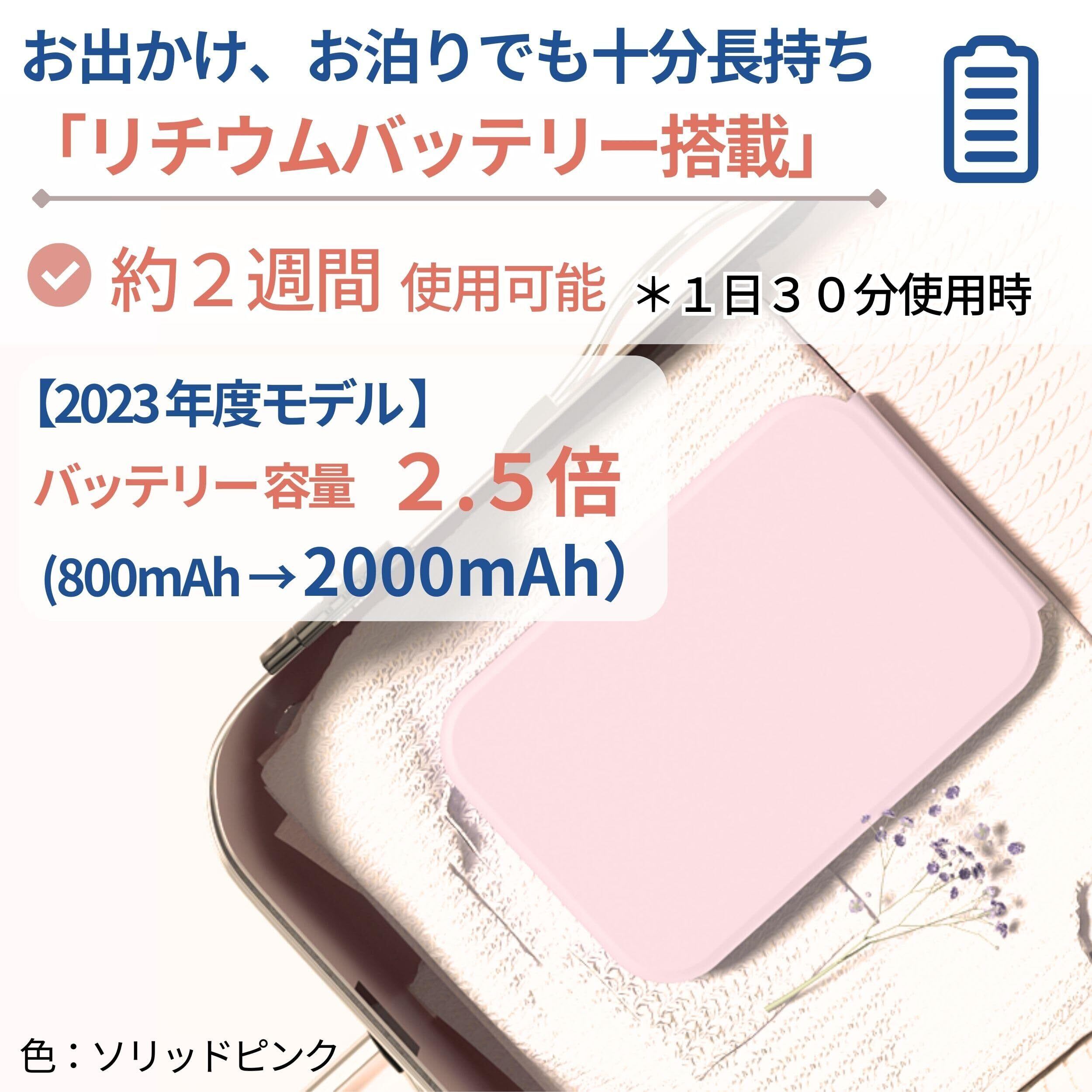 【大容量バッテリー付き。通常利用(1日30分)で2週間以上】長期の旅行・お出かけでもご利用頂けるよう大容量リチウムバッテリー(2000mAh)を搭載しました。通常利用(1日30分)で2週間以上ご利用頂けます(ライト持続時間:約8h(最大光量時)~約12h(50%光量時。持続時間は目安となり変動します。)