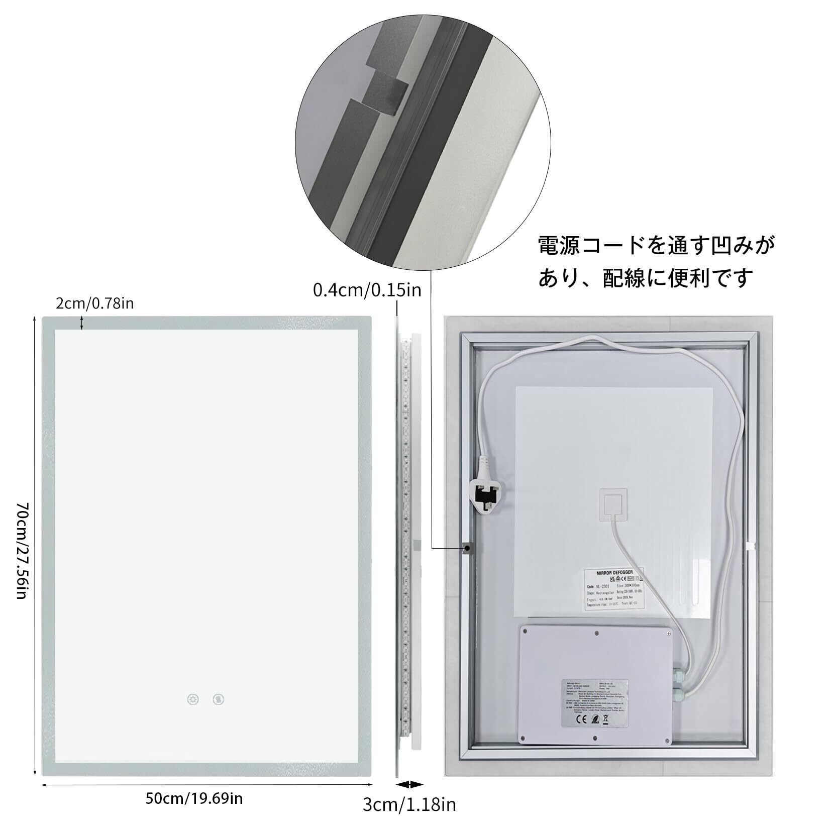 【設置簡単な壁掛け鏡】組立完成品で届き、日本用プラグが追加されたウォールミラーで、コンセントに挿すだけなので業者に頼まなくても取り付けられます。新築祝いのプレゼントとしてもおすすめです