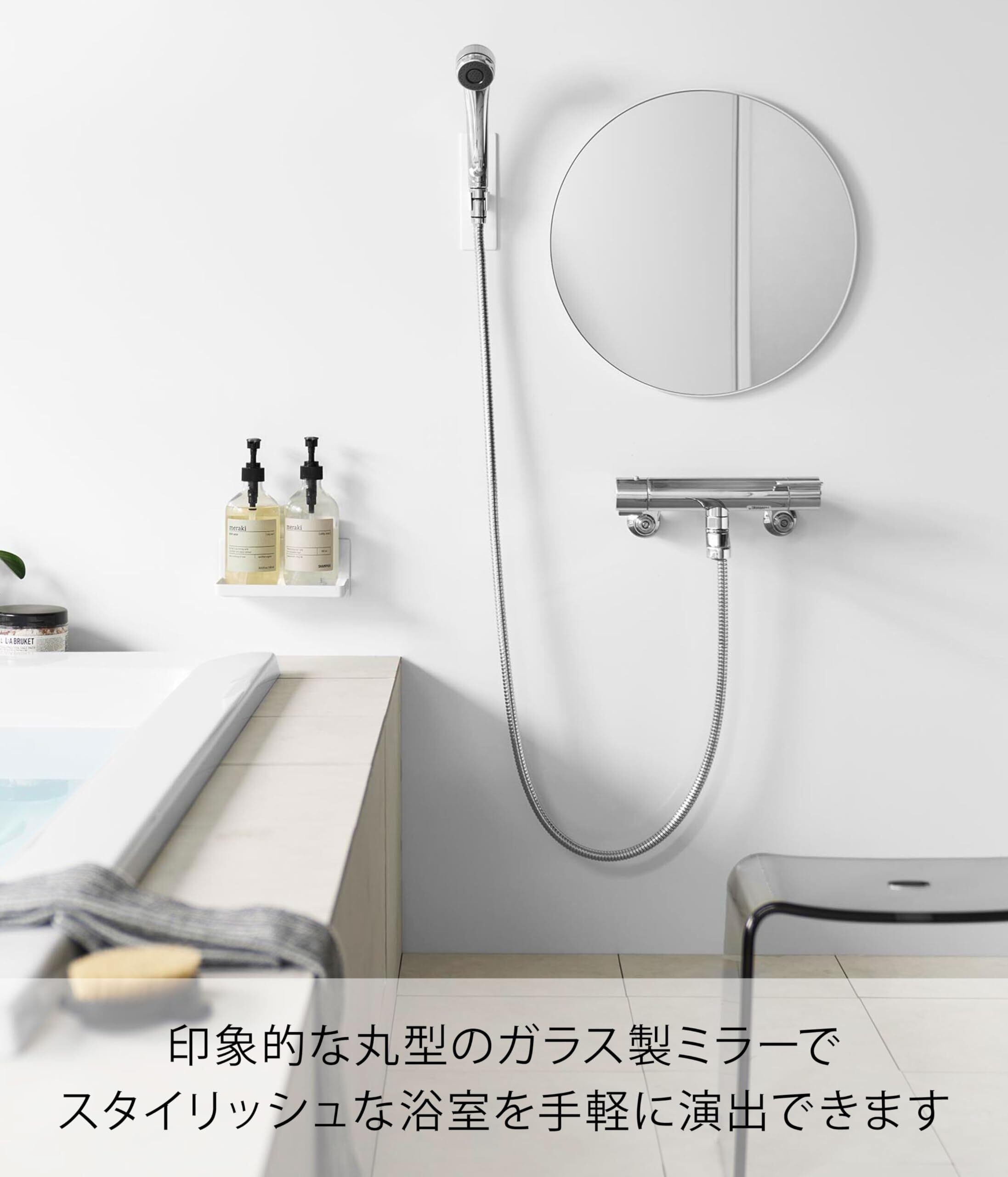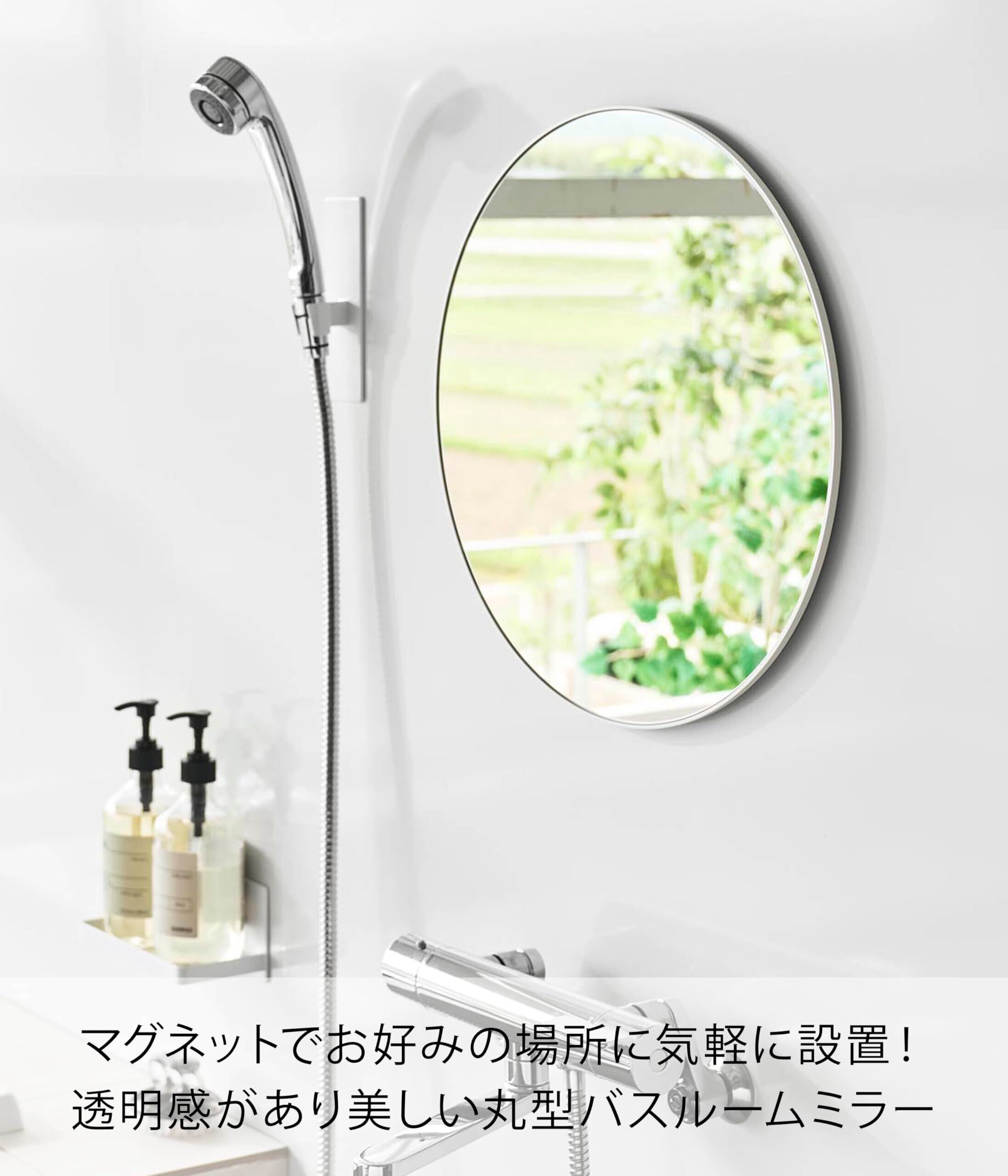 山崎実業(Yamazaki) マグネット バスルームミラー 丸型 42cm ホワイト W42×D1.4×H42cm タワー tower 曇り止め加工 ガラス製 磁石 簡単取り付け 浴室 鏡 10177