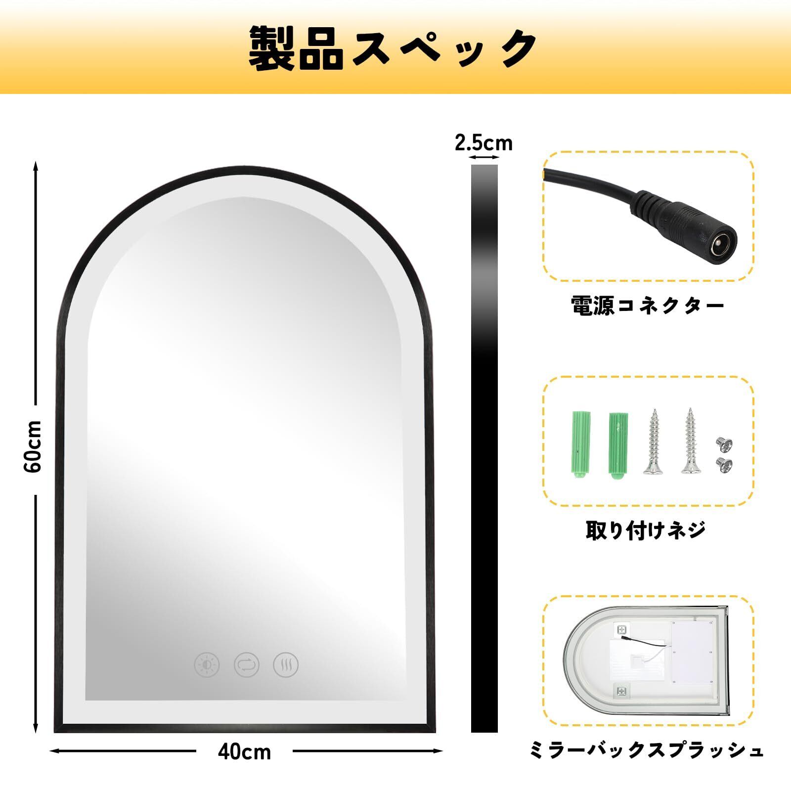 LED浴室ミラー 化粧鏡 壁掛け 60×40cm 曇り防止機能 明るさ調整 照明付き 3色調整 防水 防爆 浴室用調光ミラー 洗面所 洗面台 おしゃれ 浴室
