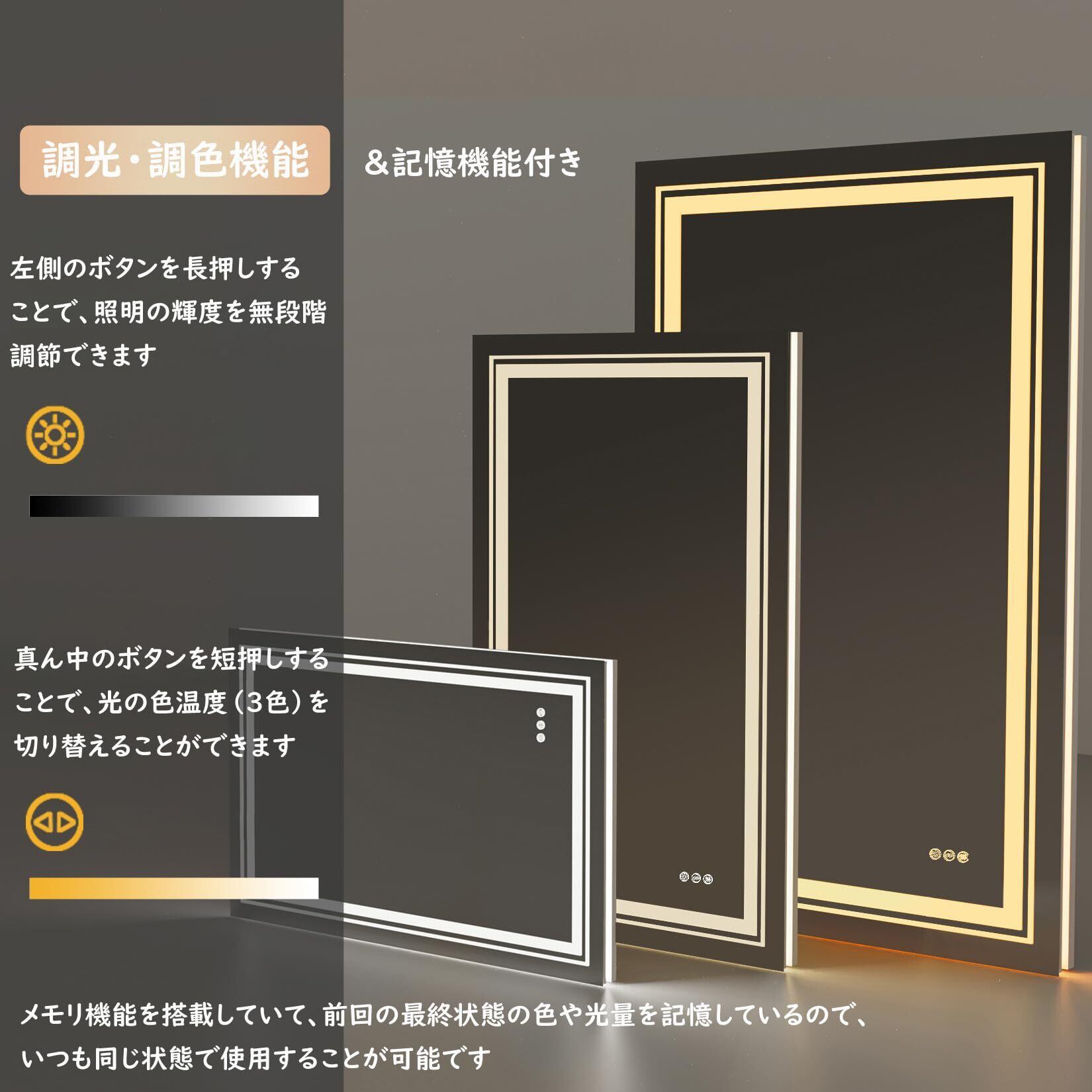 Susire 壁掛け鏡 洗面鏡 ライト付き 女優ミラー 大きい led 曇らない ウォールミラー 洗面台鏡 曇り止め 交換 バスルーム くもらない 洗面所 脱衣所 トイレ おしゃれ 四角 浴室化粧鏡 お風呂