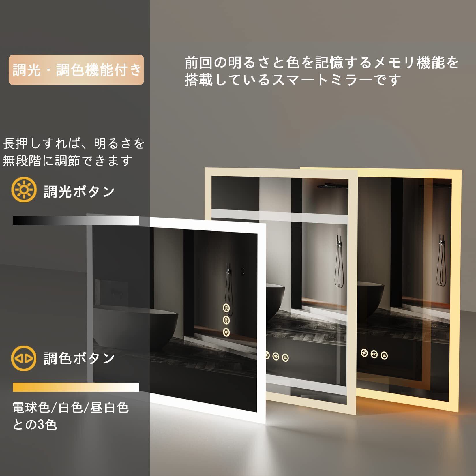 特徴 くもり止め, タッチセンサー, フレームレス, ライト付き, 調光可能