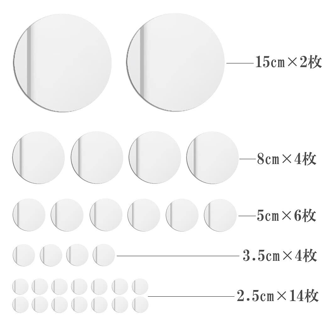 HappyHome ウォールステッカー ミラー シール 貼る鏡 ウォールミラー 丸型 割れにくい 貼り付け 剥がせる 30枚入
