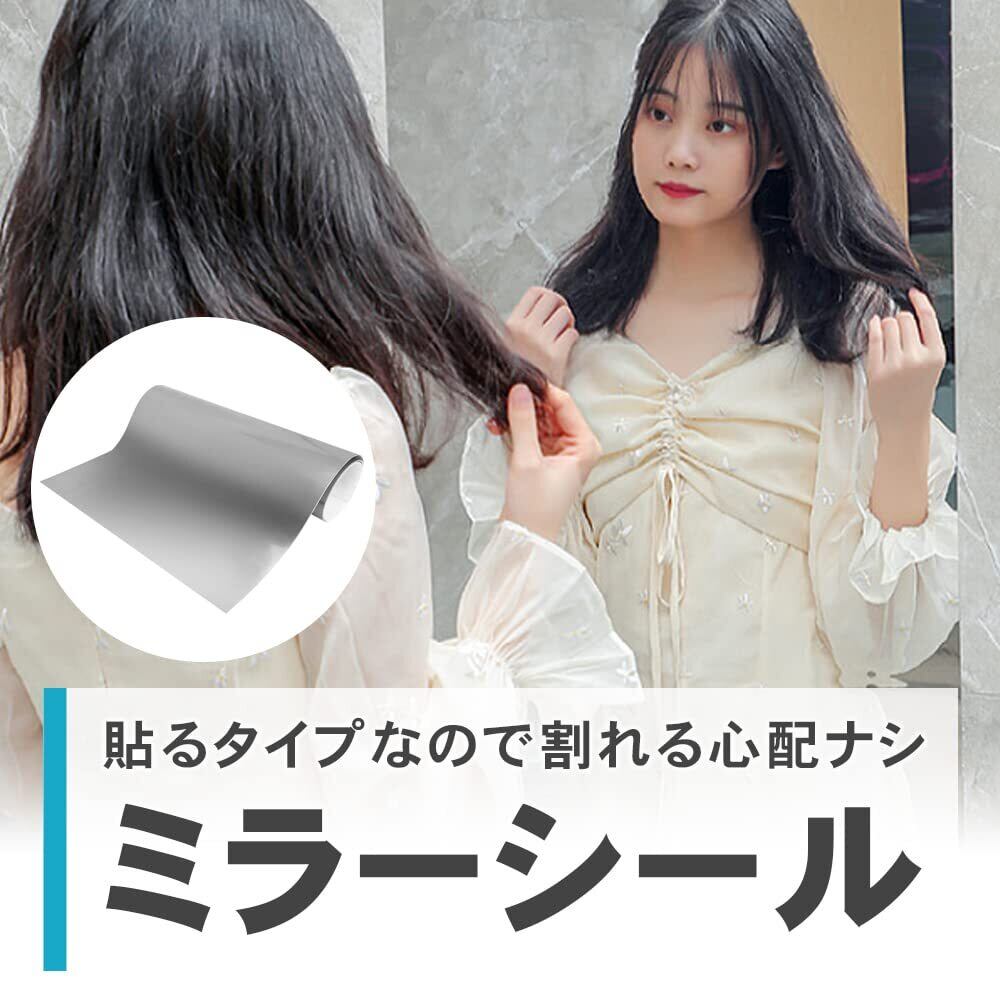 割れない鏡 ミラーシール ウォールステッカー 貼るだけ 壁面設置 省スペース カット可能 (50cm×1.5m)