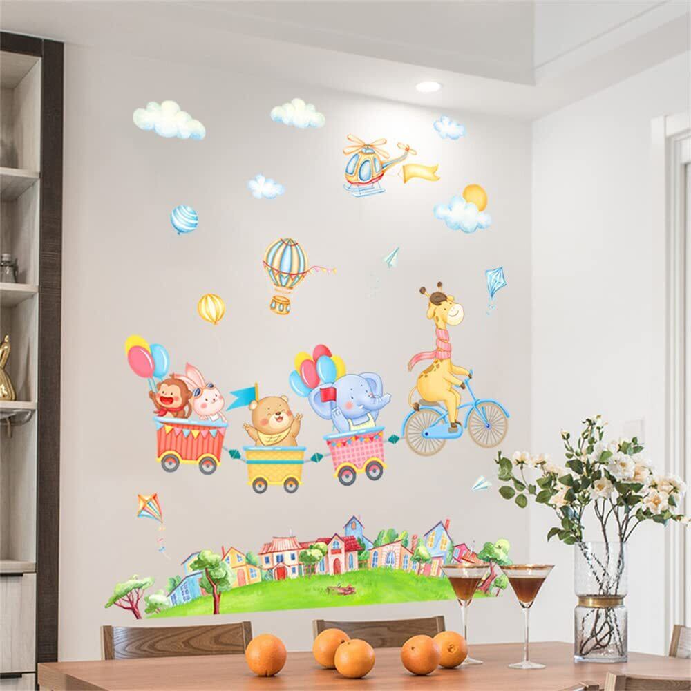 ウォールステッカー おしゃれ 動物 漫画 動物楽園 自転車 鉄道車両 ウォールシール ジラフ 猿 熊 象さん 風船 雲 市内ステッカー 絵画風 防水すてっかー 剥がせる 壁に貼るステッカー 子供 こども部屋 御洒落 ウォールデコ 居間の家庭装飾品 粘着剤付き