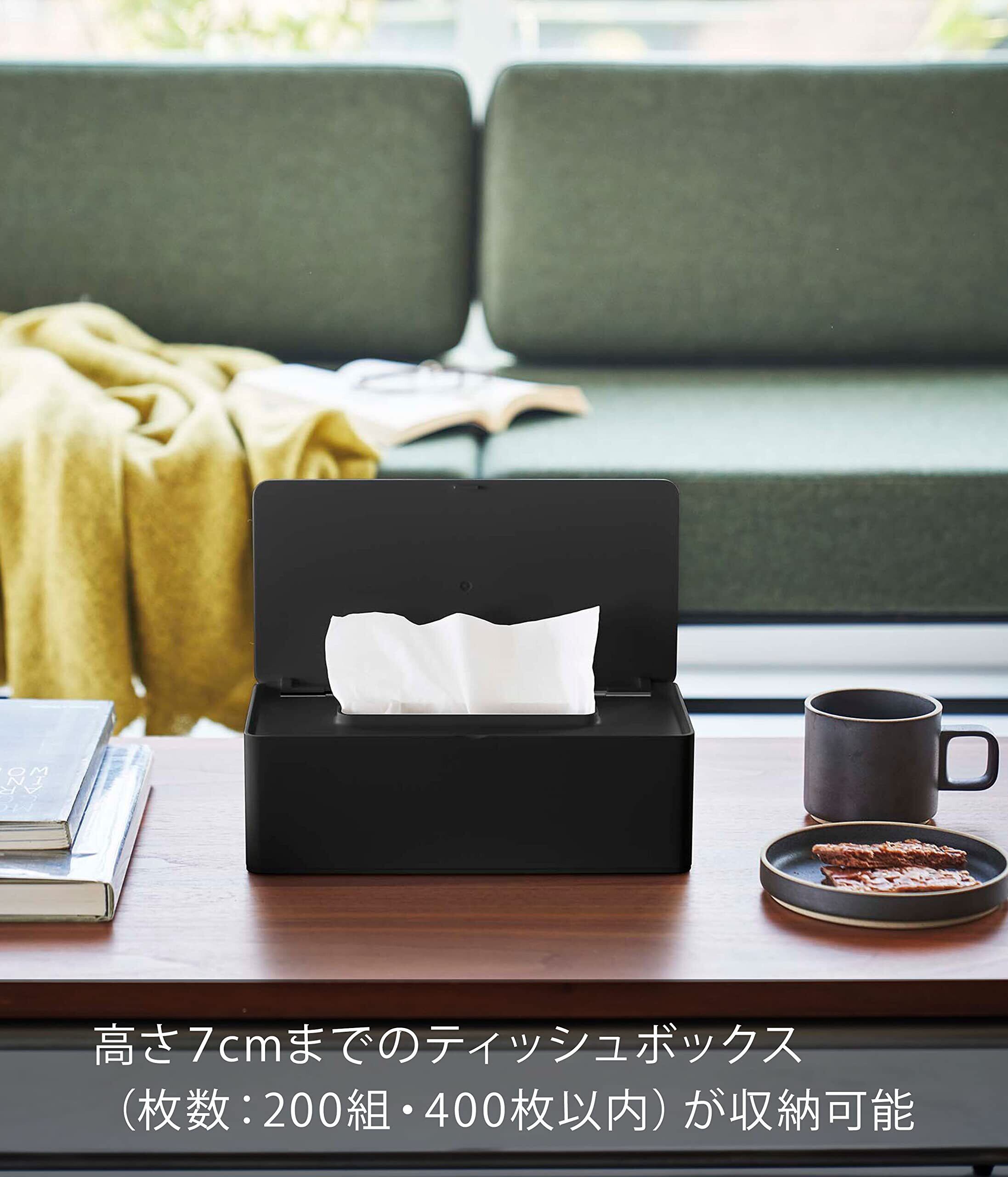山崎実業(Yamazaki) 蓋付き ティッシュケース レギュラーサイズ ブラック 【対応サイズ:内寸 約W25×D12×H7cm】 タワー tower いたずら防止 ティッシュボックス 5721
