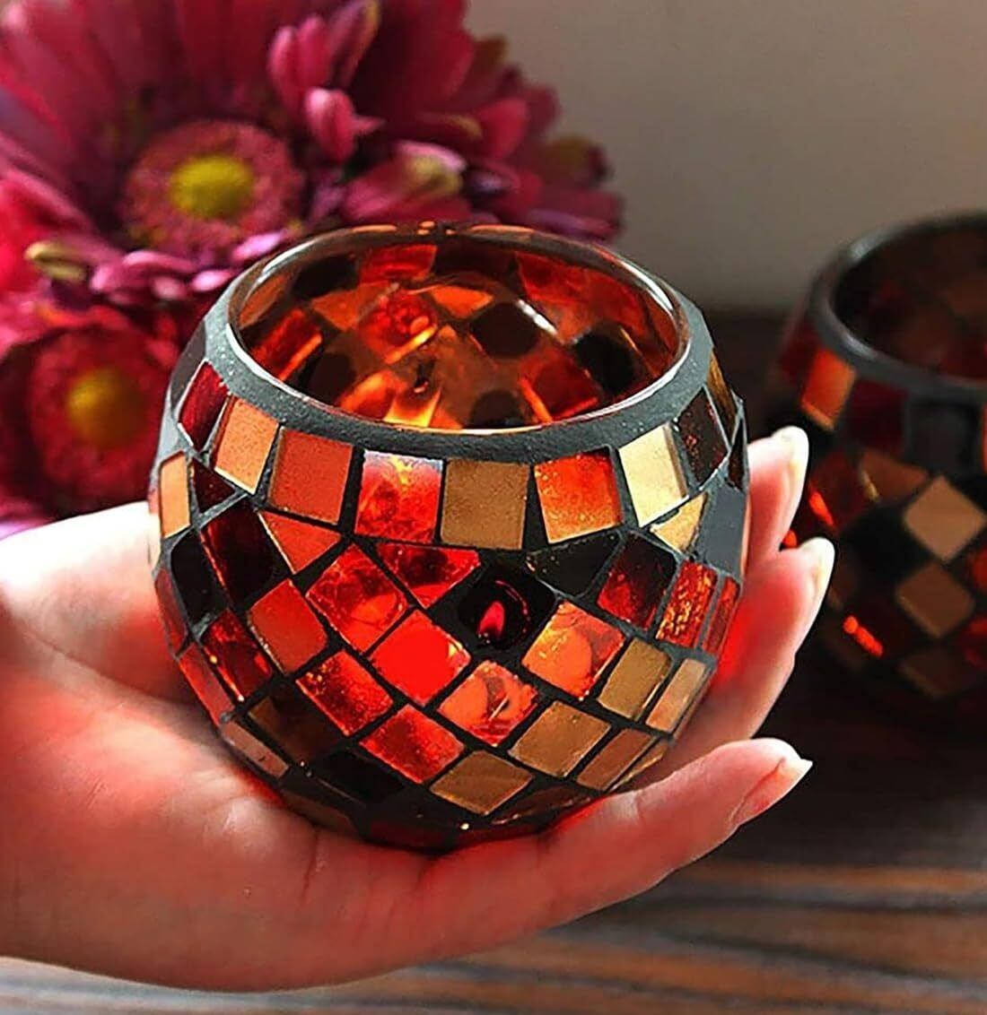 モザイク調のガラスがオシャレな、高級感あるキャンドルスタンドです。