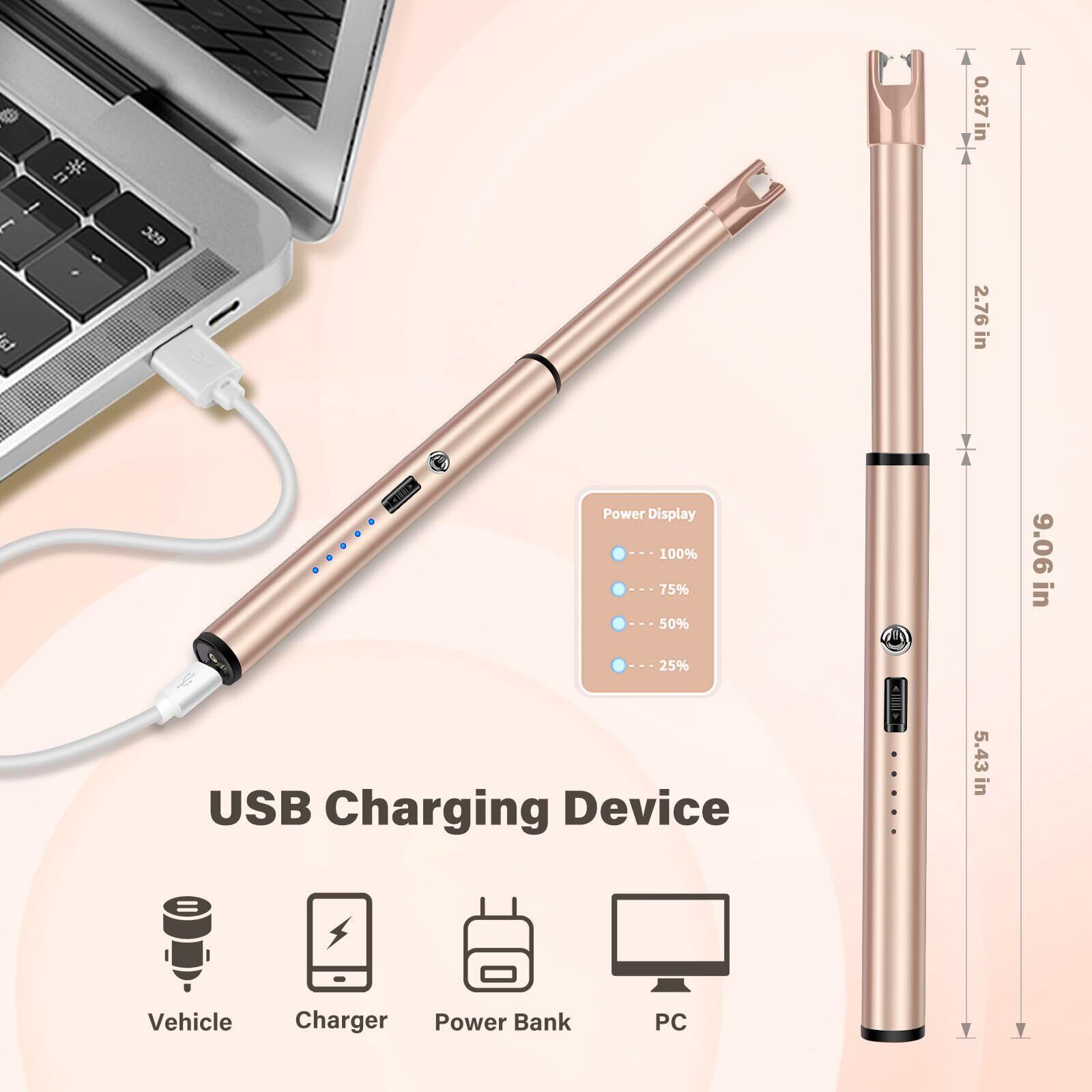 Navpeakキャンドルライターロングネック防風充電可能アークライターキャンドルガスコンロ暖炉グリルキッチングリル用 (ピンクゴールド)