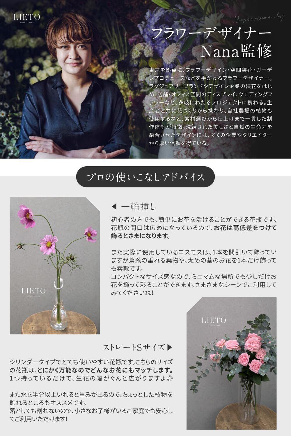 【雑誌掲載!フラワーデザイナー監修】 花瓶 割れない 透明 フラワーベース アクリル おしゃれ 上品 大きい インテリア 花器 水栽培 生け花 造花用 (10X20cm(Sサイズ))