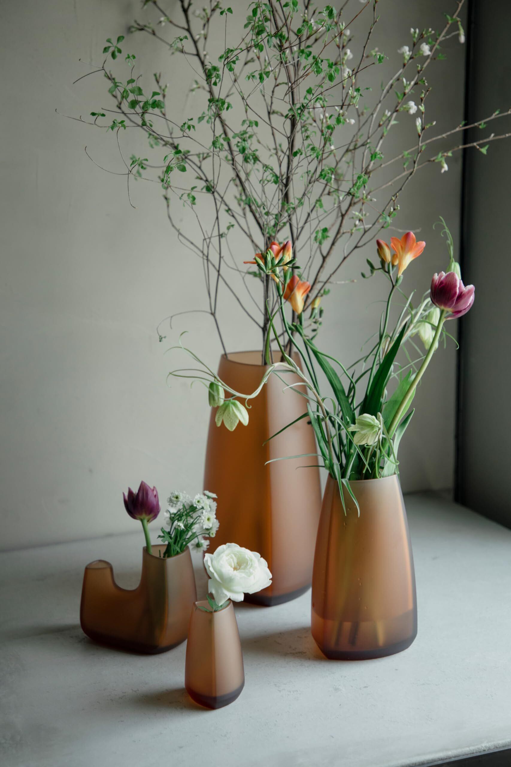 植物の魅力を引き立て、インテリアオブジェとしても存在感を放つフラワーベースTRE。