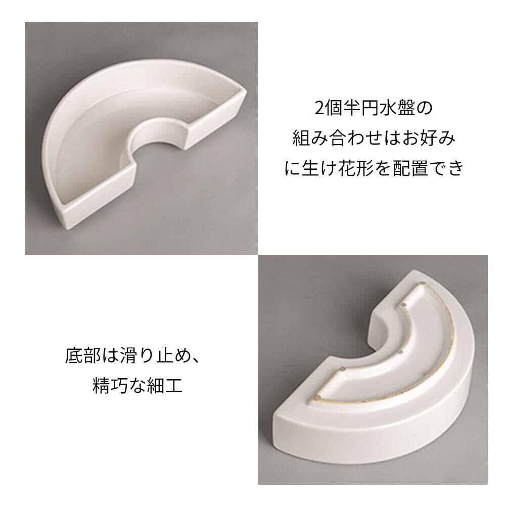HIGHAWK花器 華道 生け花用 水盤 花瓶 半円 挿花 フラワーベース フラワーアレンジメント 卓上 配置できる いけばな道具 2個(ホワイト2個)