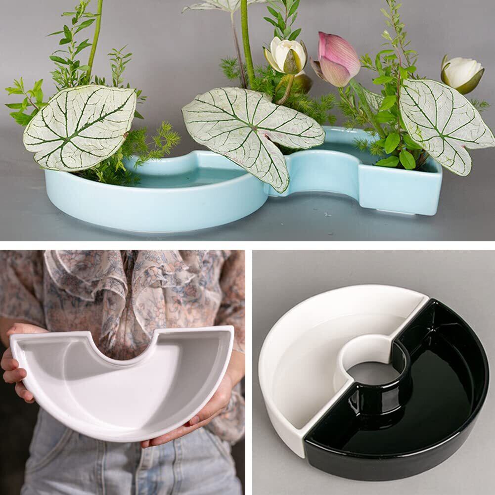 ✿様式:生け花用半円形水盤、ユニークな形、シンプルでエレガントなデザイン。2個半円水盤の組み合わせは形を配置できます。日本式にも、西洋式のフラワーアレンジメントにも適しています。図のように、花と草、枝の組み合わせは適します。