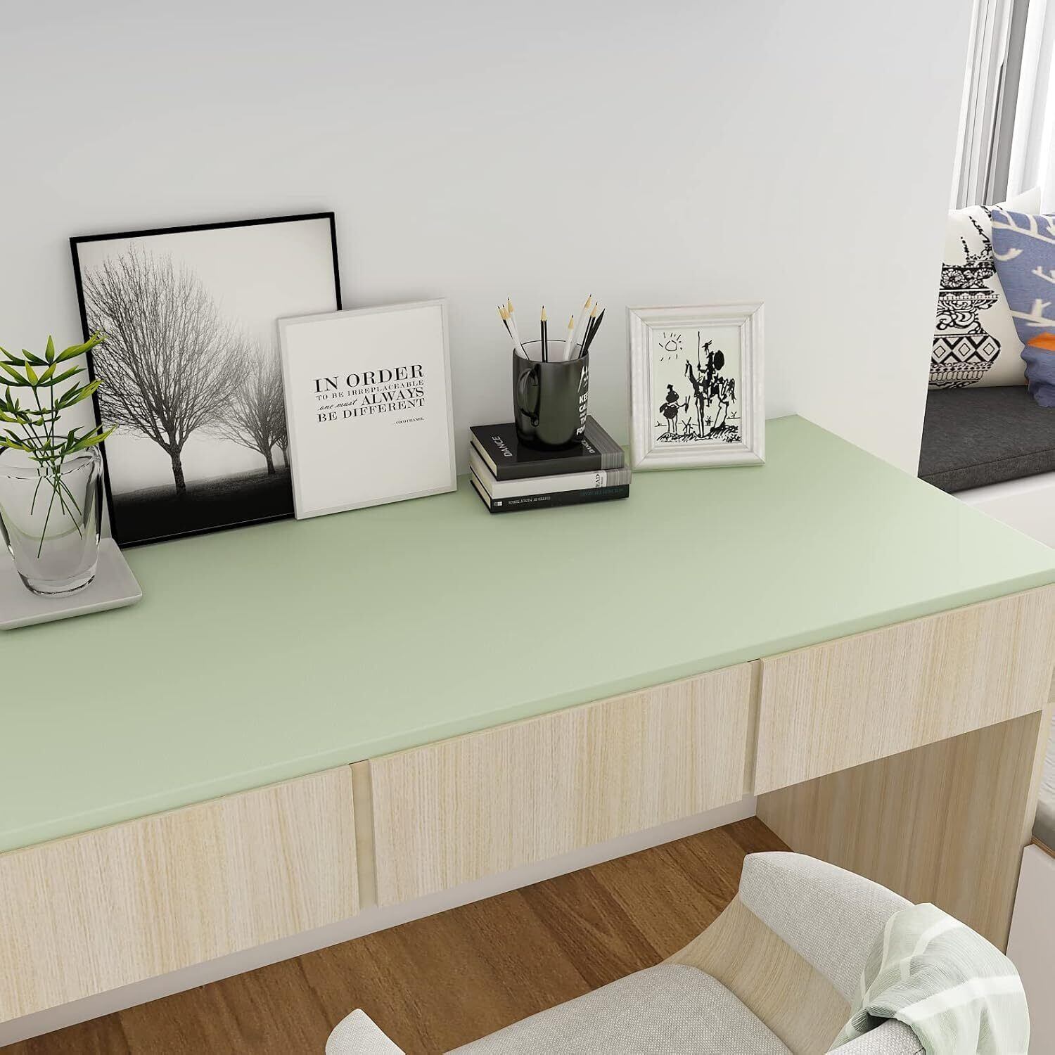 壁紙 シール 無地 アルミ箔付き つや消し厚手 防水 壁紙 補修 多用途 壁 キッチン リビング キャビネット テーブル DIY 約5mX幅40cm ライトグリーン