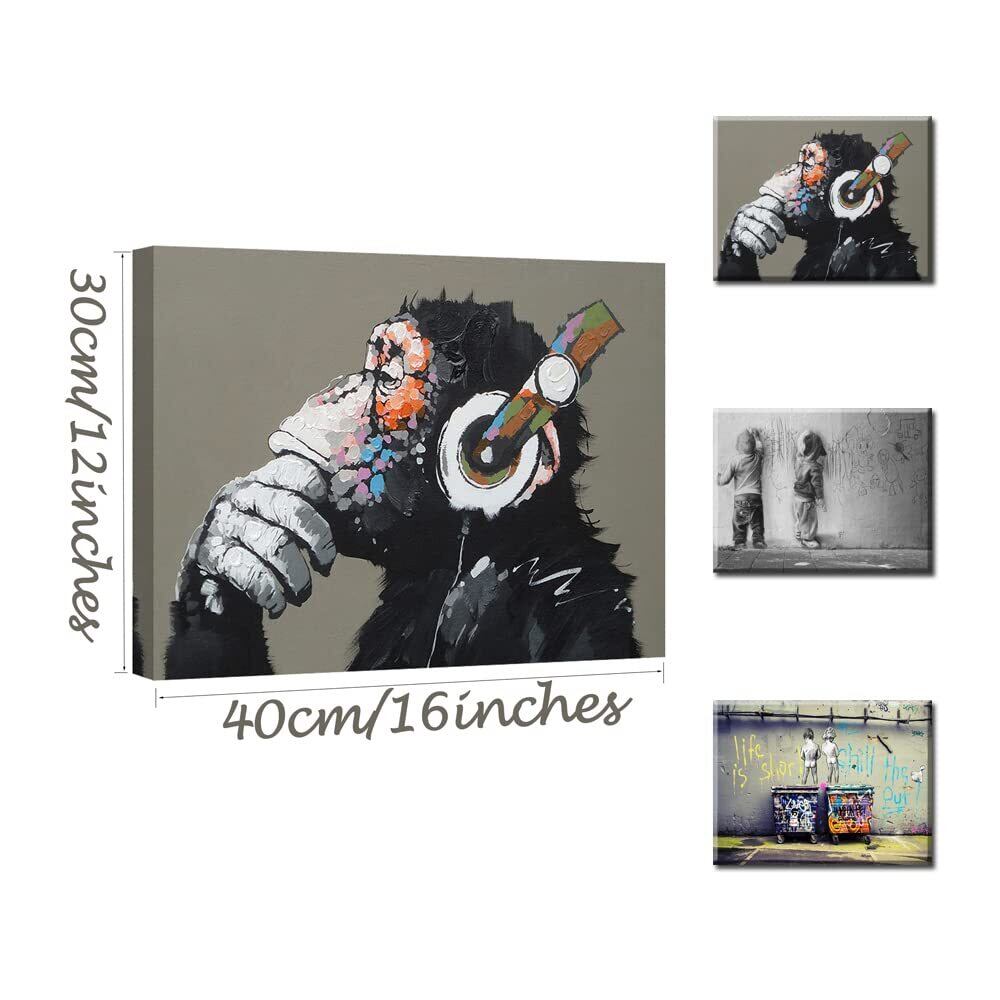 PIY PAINTINGアートポスター 『Banksy落書きキャンバス絵画セット』 軽くて取り付けやすい木枠付きの完成品 バンクシーの絵 現代のフレーム装飾画 壁掛け リビング、玄関、寝室、事務所に飾る壁画アート(木枠付き、30x40cm、3枚パネルセット)