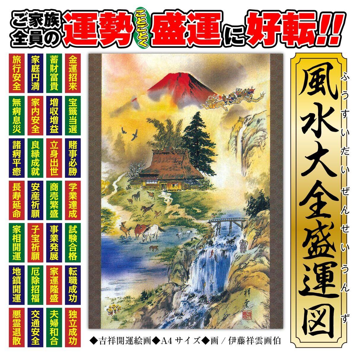 風水 絵画 金運 玄関 トイレ 寝室 リビング 「風水大全盛運図」 飾るだけの開運法 ご家族全員の運勢がことごとく盛運に好転 金運招来 合格祈願 商売繁盛 良縁成就 諸病平癒 伊勢和紙 A4サイズ 吉祥の会