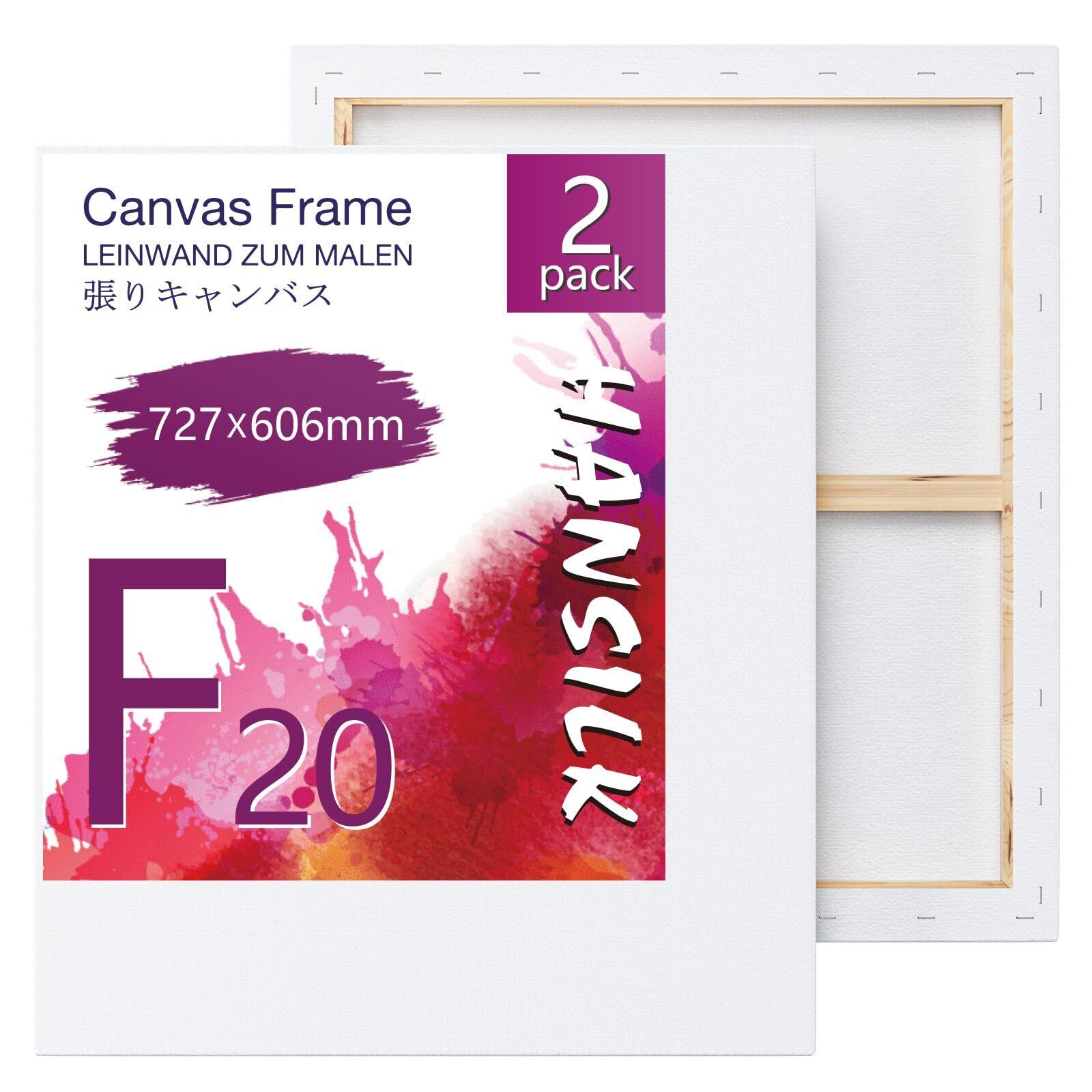 HANSILK キャンバス 張りキャンバス F20 2枚セット キャンバス画材 油絵 画材 画布 油絵の具 油彩・アクリル兼用 化繊綿製 オイル漏れ防止 厚手 中目 初心者 (727mmx606mm*2枚)