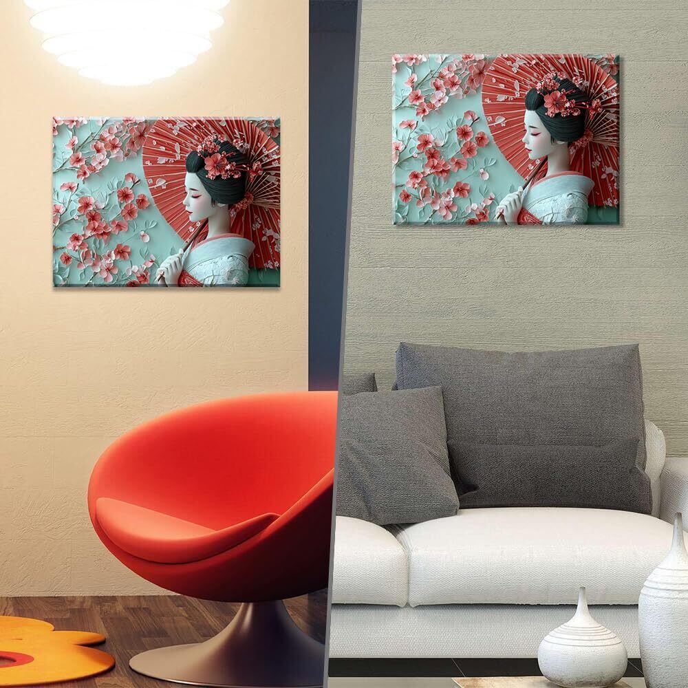 PIY PAINTING アートパネル オシャレ、ウォールアート、 美しい女性の絵画、 ピンクの桜の背景の装飾、 キャンバス写真、 日本風ート キャンバス、 花を眺める傘を差した女性、 現代の絵画、 ウォールプリント フレームド、 装飾 リビング ダイニング 書斎 バスルーム 階段、 30x40 cm、 内蔵木枠付き