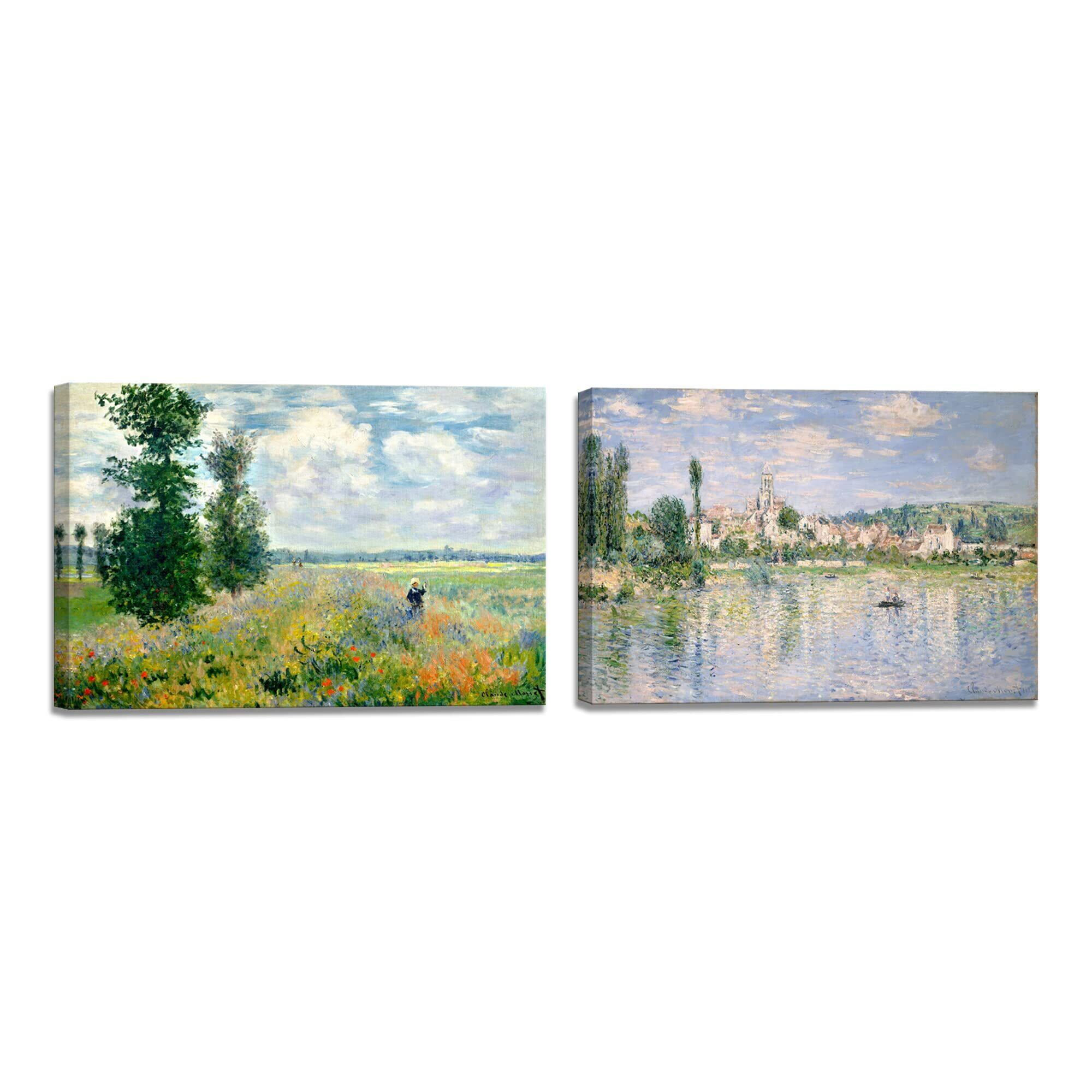 クロード・モネ ポピー畑 セーヌ川 風景画 モネ アートパネル ポスター 油絵 飾り絵 抽象 絵画 壁飾り 開運 額付きポスター 木枠付きの完成品 2枚 (40x60cm x2Pcs)