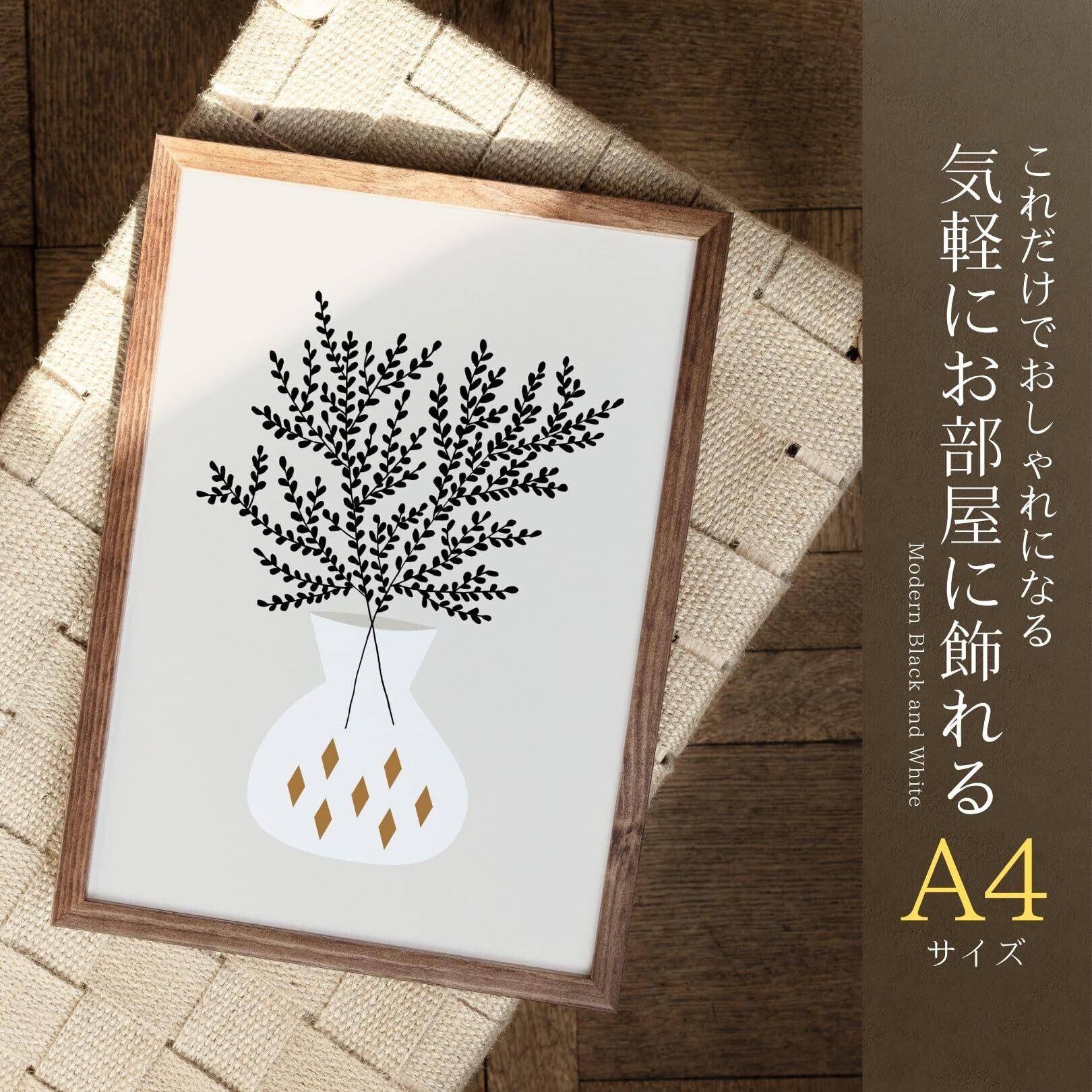 ポスター アートポスター ポスターフレーム A4 A3 A2 北欧 木 花 植物 おしゃれ インテリア 花瓶 【フレーム付き】 (A4ポスター&ウッド調フレーム) 027fr