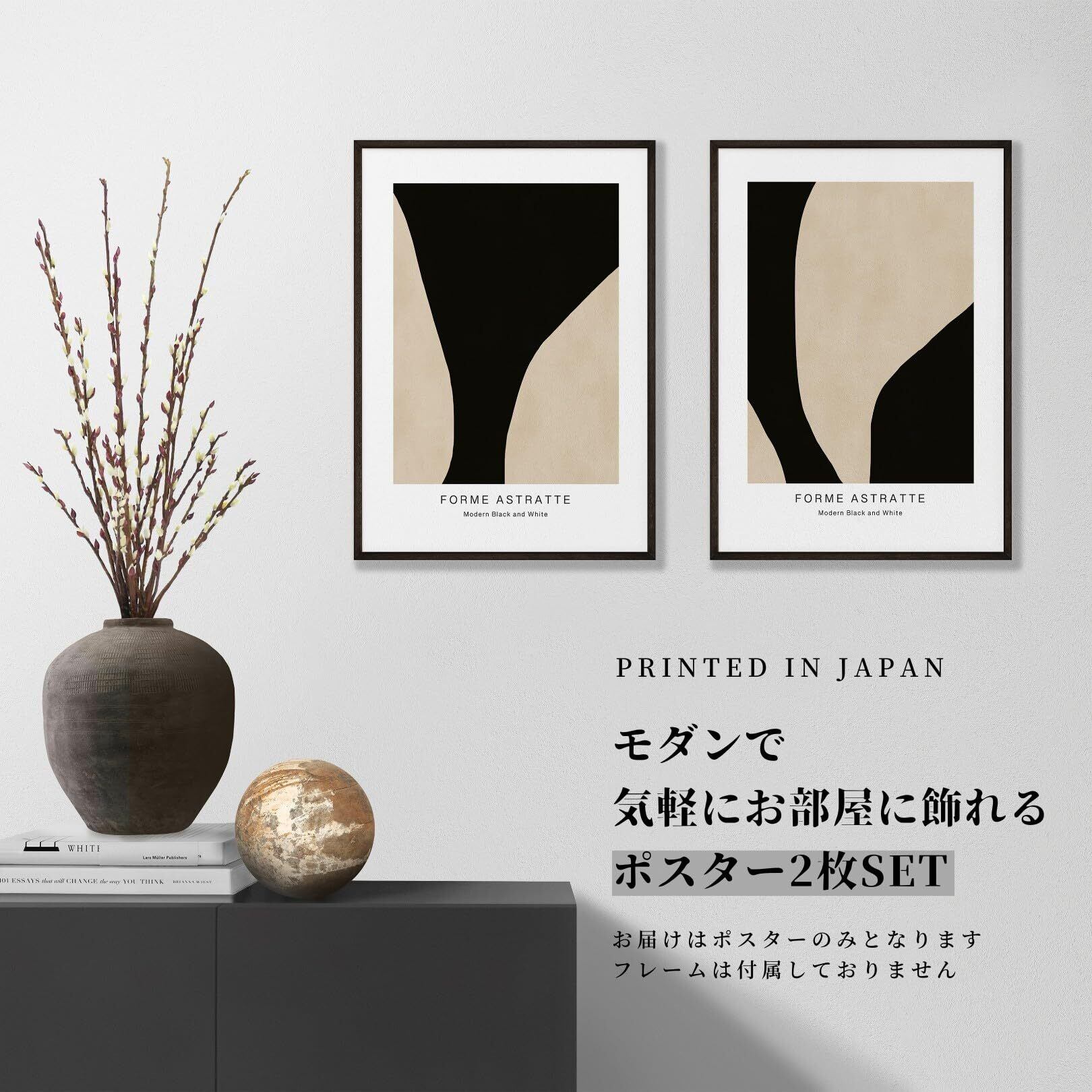 こちらは、ベージュ&ブラックをモチーフとした北欧デザインのポスターです。A4サイズ2枚セットとなります。