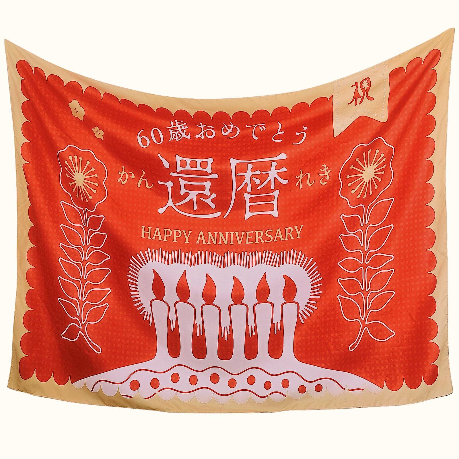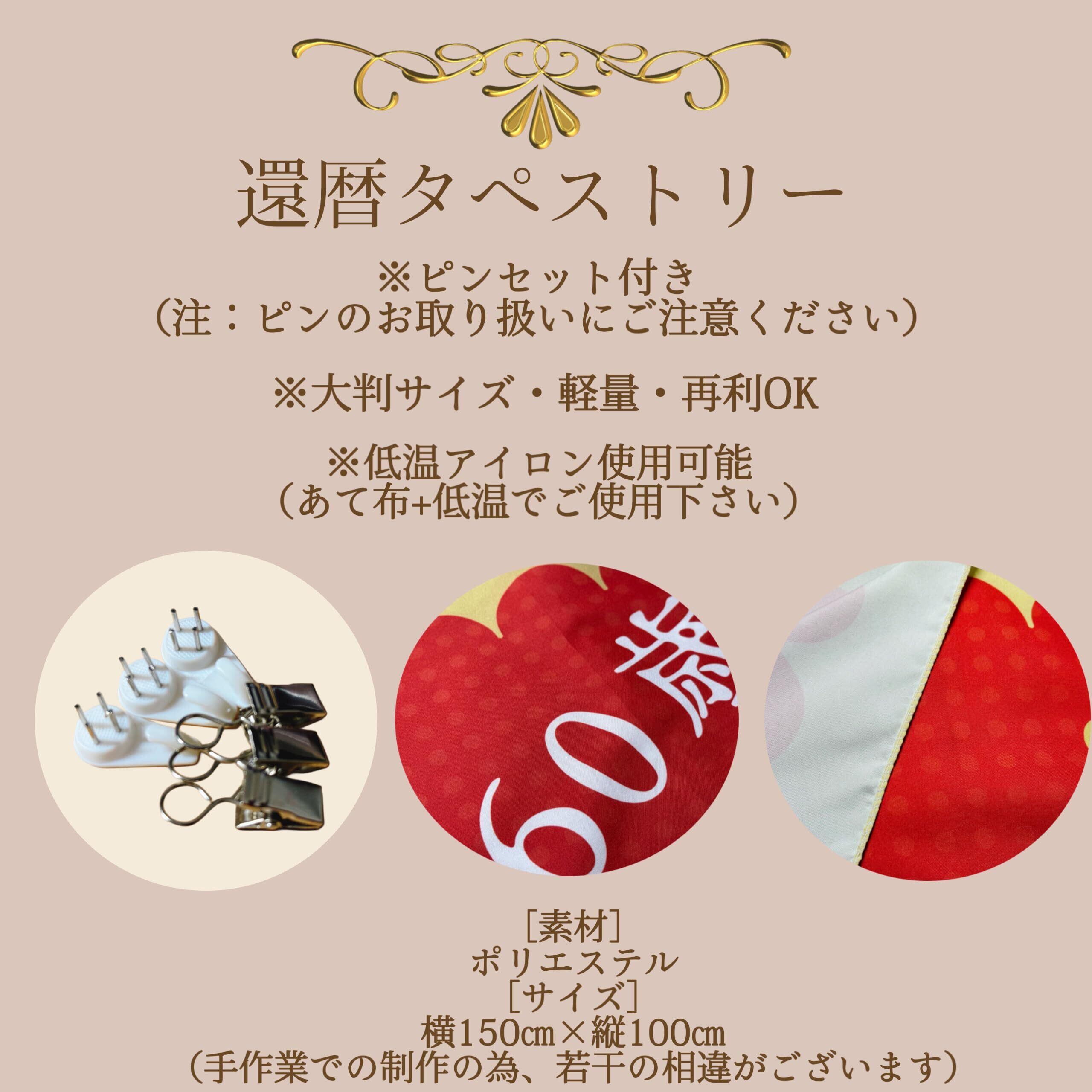還暦飾り タペストリー 還暦祝い【60歳の特別な誕生日パーティー】 150×100cm 大判 背景 還暦グッズ 背景布 飾り付け 装飾 赤 金 長寿祝い 女性 軽量