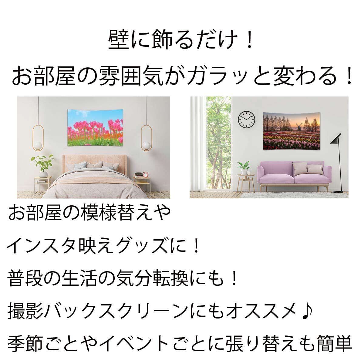 ND タペストリー チューリップ 花 フラワー ピンク 赤 壁面 インテリア 布 おしゃれ 目隠し 部屋 飾り付け 背景布 グッズ 雑貨 小物 壁 写真 自然 間仕切り 北欧 zoom 母の日 動画撮影 背景 風車 プレゼント (デザイン4)
