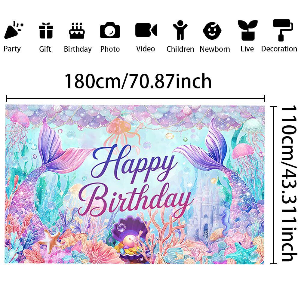 マーメイド バースデー タペストリー 誕生日 人魚姫 飾り付け 72×44インチ 大判 Happy Birthday タペストリー 写真背景 壁飾り デコレーション パーティー お祝い 女の子 男の子