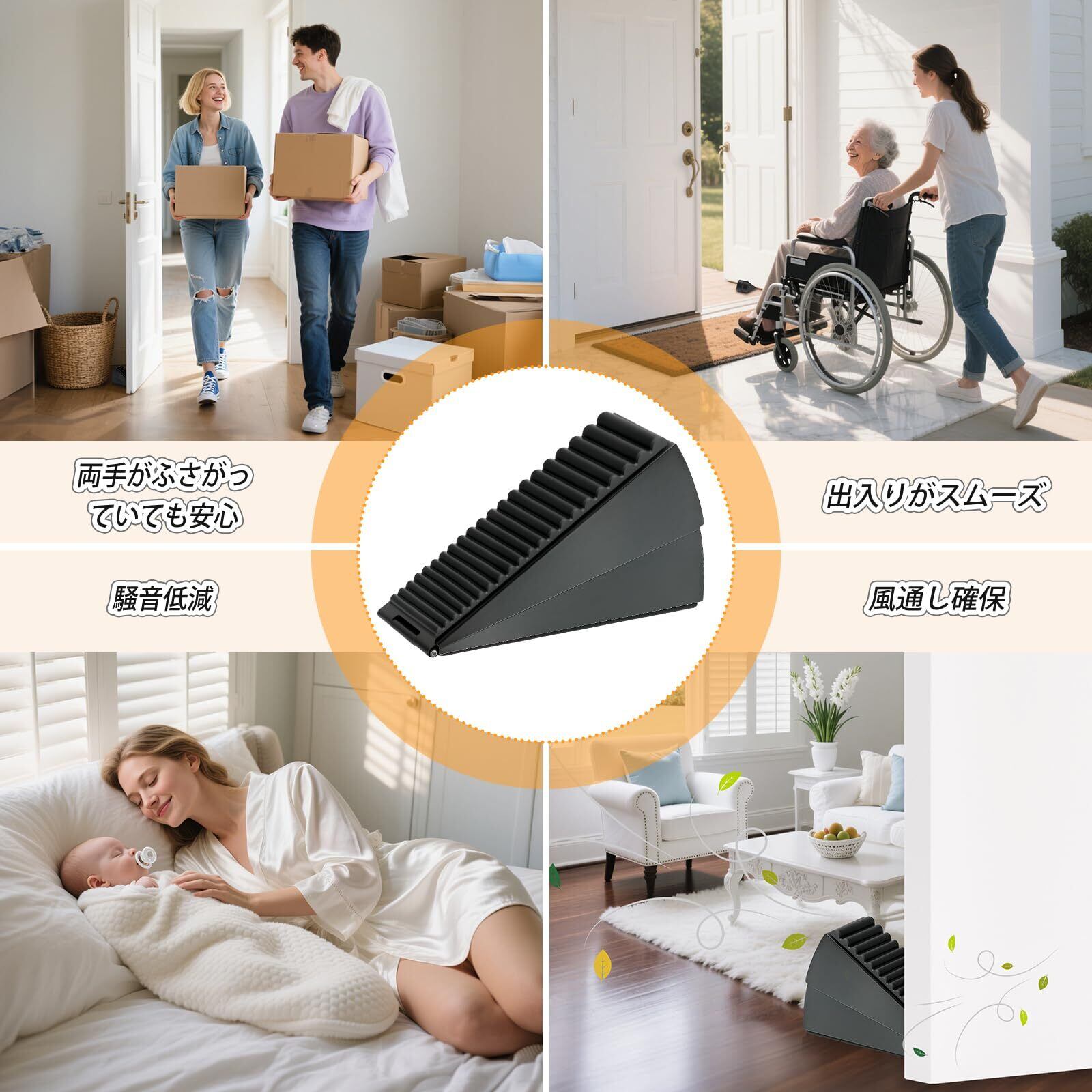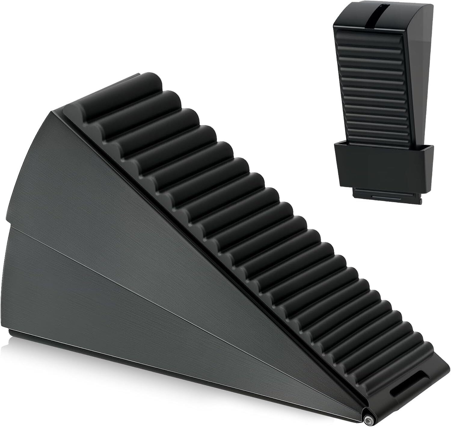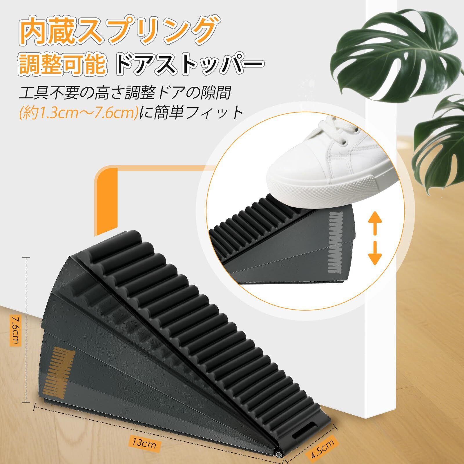 DOIOWN ドアストッパー 強力固定 大型 調整式 スプリング式 ドアストッパージャマー ゴム製 収納ホルダー付き 厚い重いドア対応 高さ調整約7.6cm隙間用 ブラック