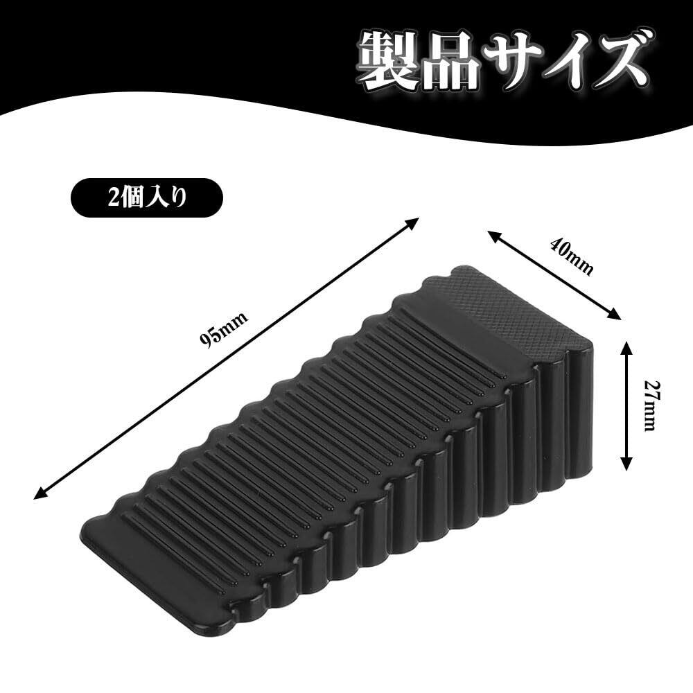 【パッケージ内容】ドアストッパー2個入り。 サイズ:95mm*40mm*27mm。カラー:ブラック。