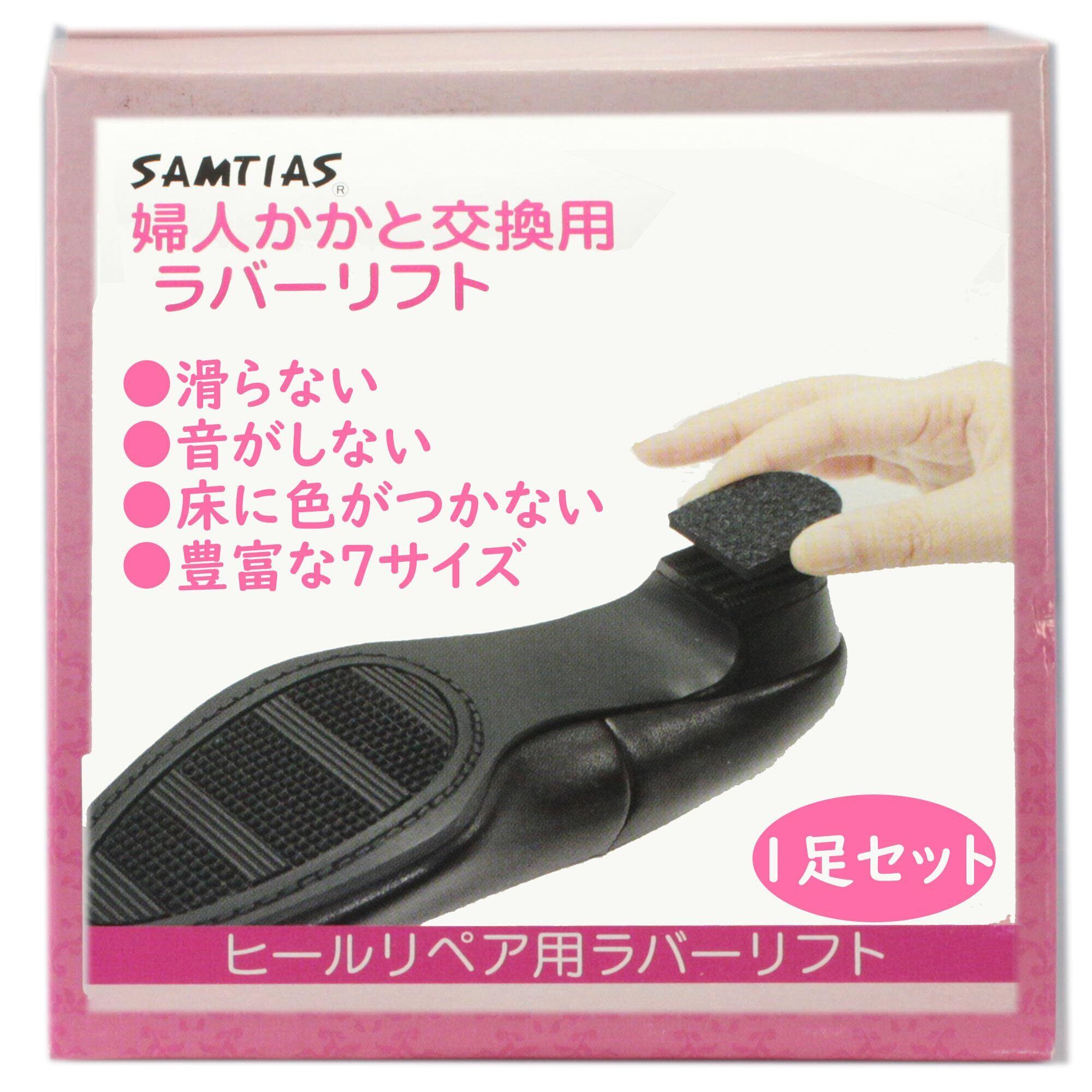 婦人用ラバーリフト。婦人かかとゴム交換修理キット 1足分。釘が13本入っています。靴のかかとのすり減りを交換。かかとの修理が簡単にできます。