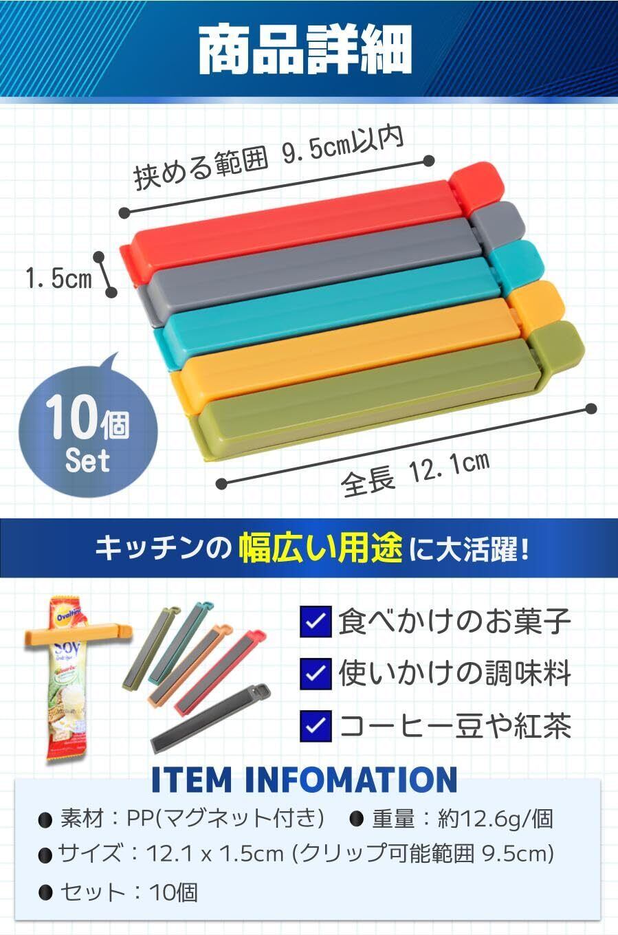 【商品詳細】素材:PP(マグネット付き)重量:約12.6g/個/サイズ:12.1 x 1.5cm (クリップ可能範囲 9.5cm)/セット:10個/