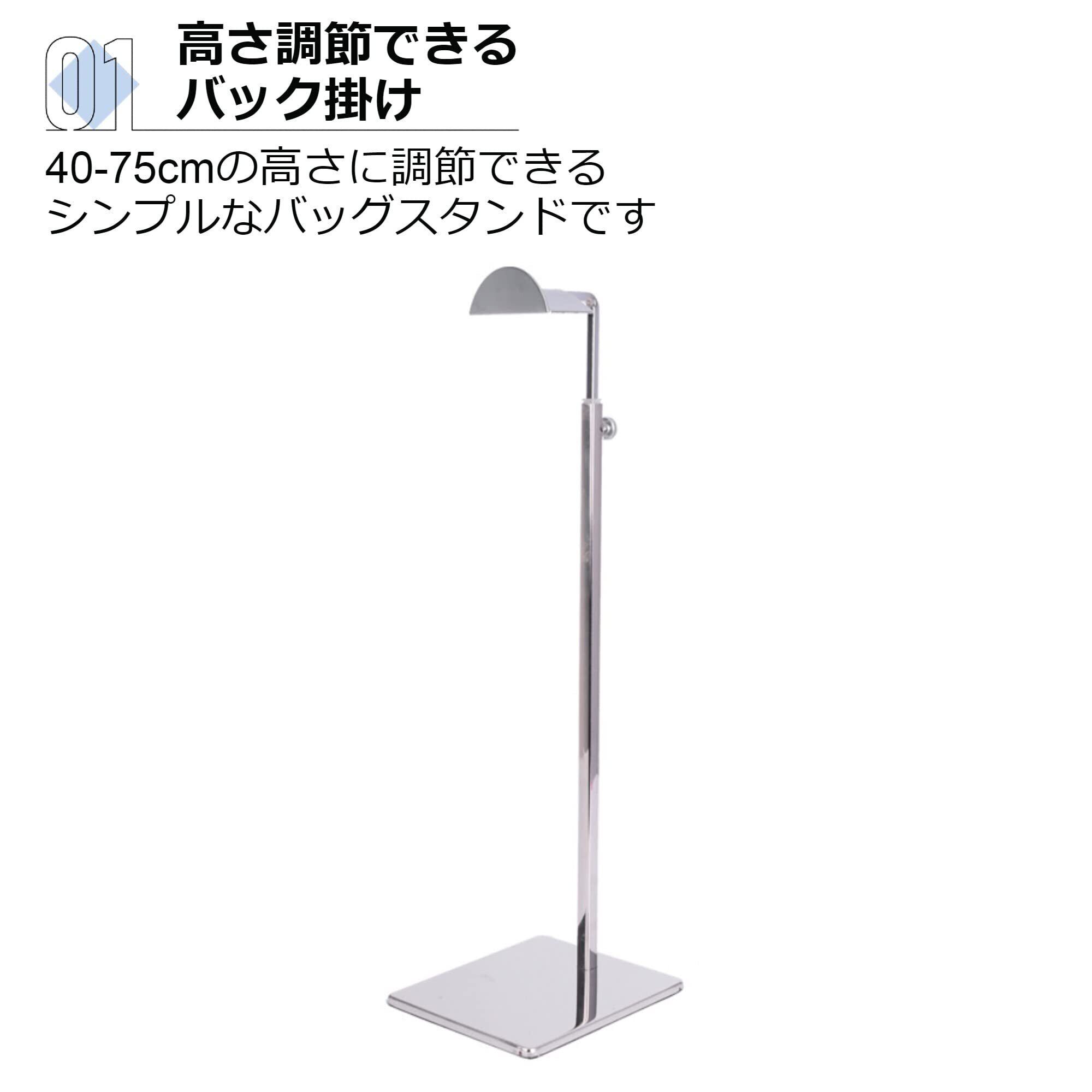 【高さ調節できるバッグスタンド】40-75cmに高さ調節できるおしゃれなバッグスタンドです。滑らかな表面で、商品の陳列やお気に入りのバッグの陳列にも使えます。