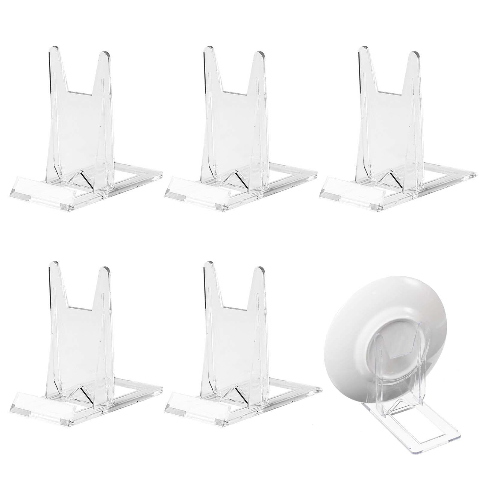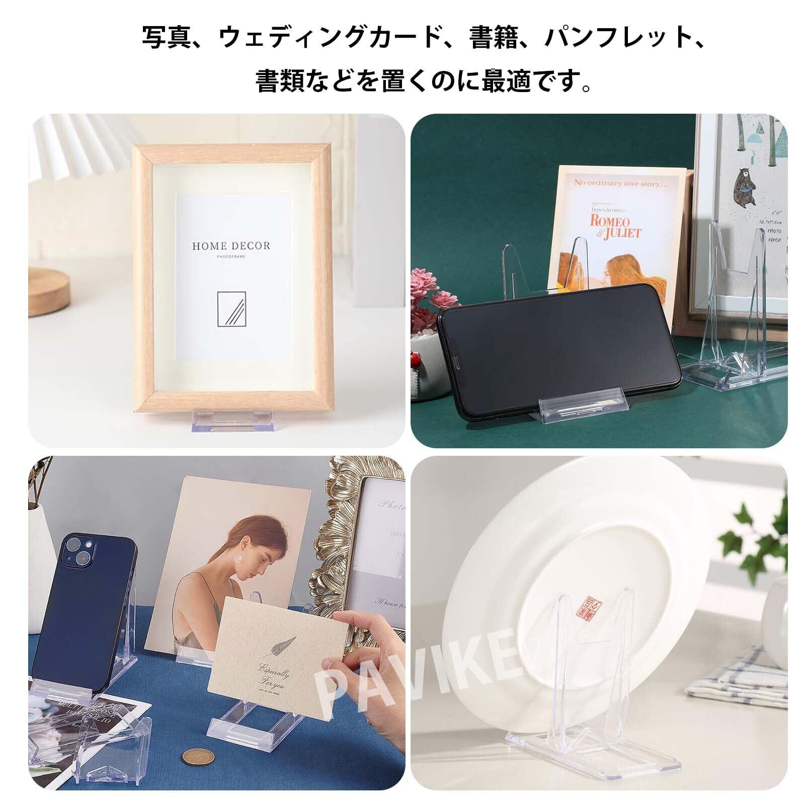 PAVIKE アクリルスタンド 展示台 (5個入り) プラスチックプレートスタンド 展示用スタンド アクリルブックスタンド プラスチックプレートスタンド 写真立て 本立て 調節可能 陳列棚 透明 台座 本、写真、パンフレット、タブレット、携帯電話などのディスプレイ用