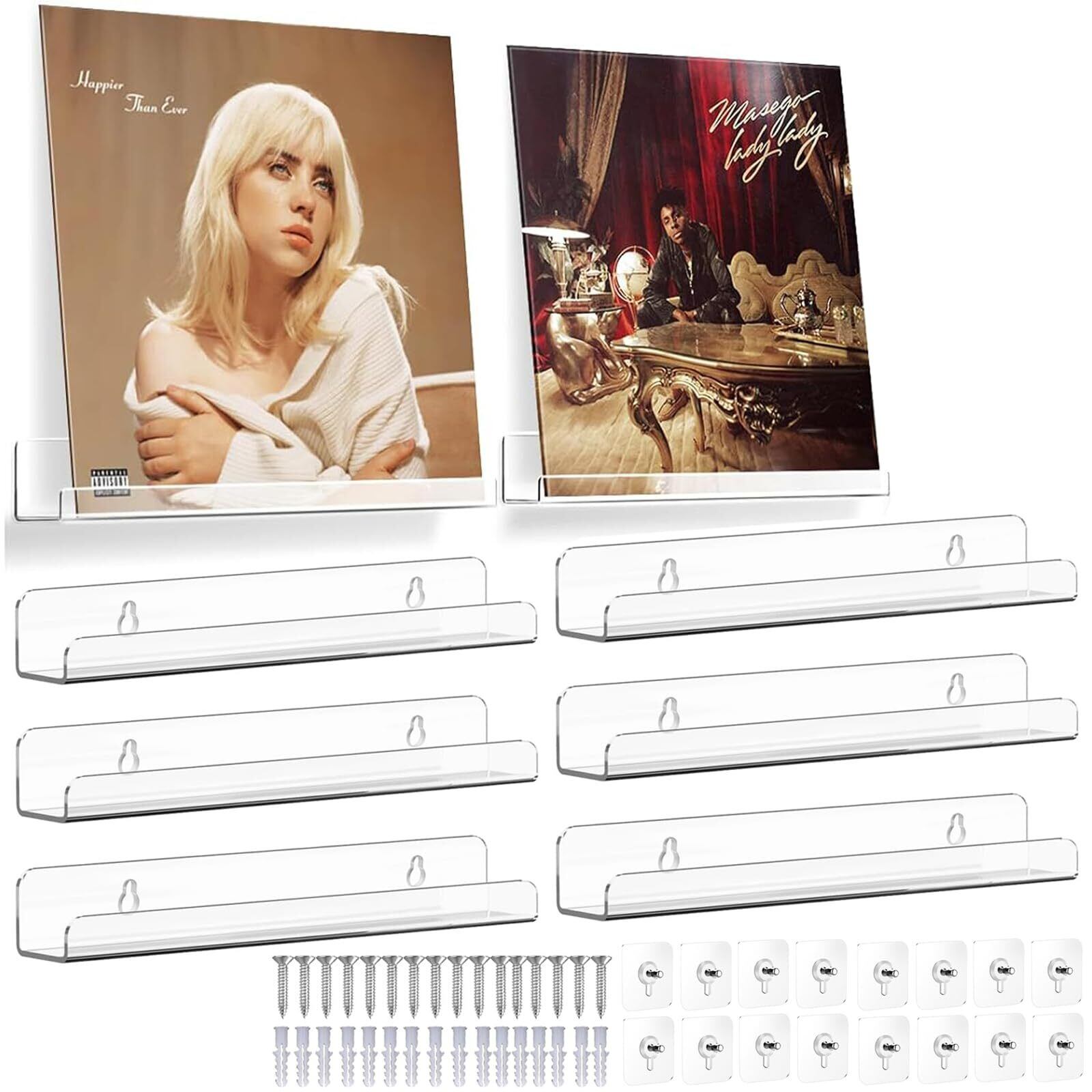 レコードラック 壁掛け棚 8個セット 透明アクリル製 LPレコード 収納ラック CDラック ディスプレイ壁 マガジンラック 簡単取付