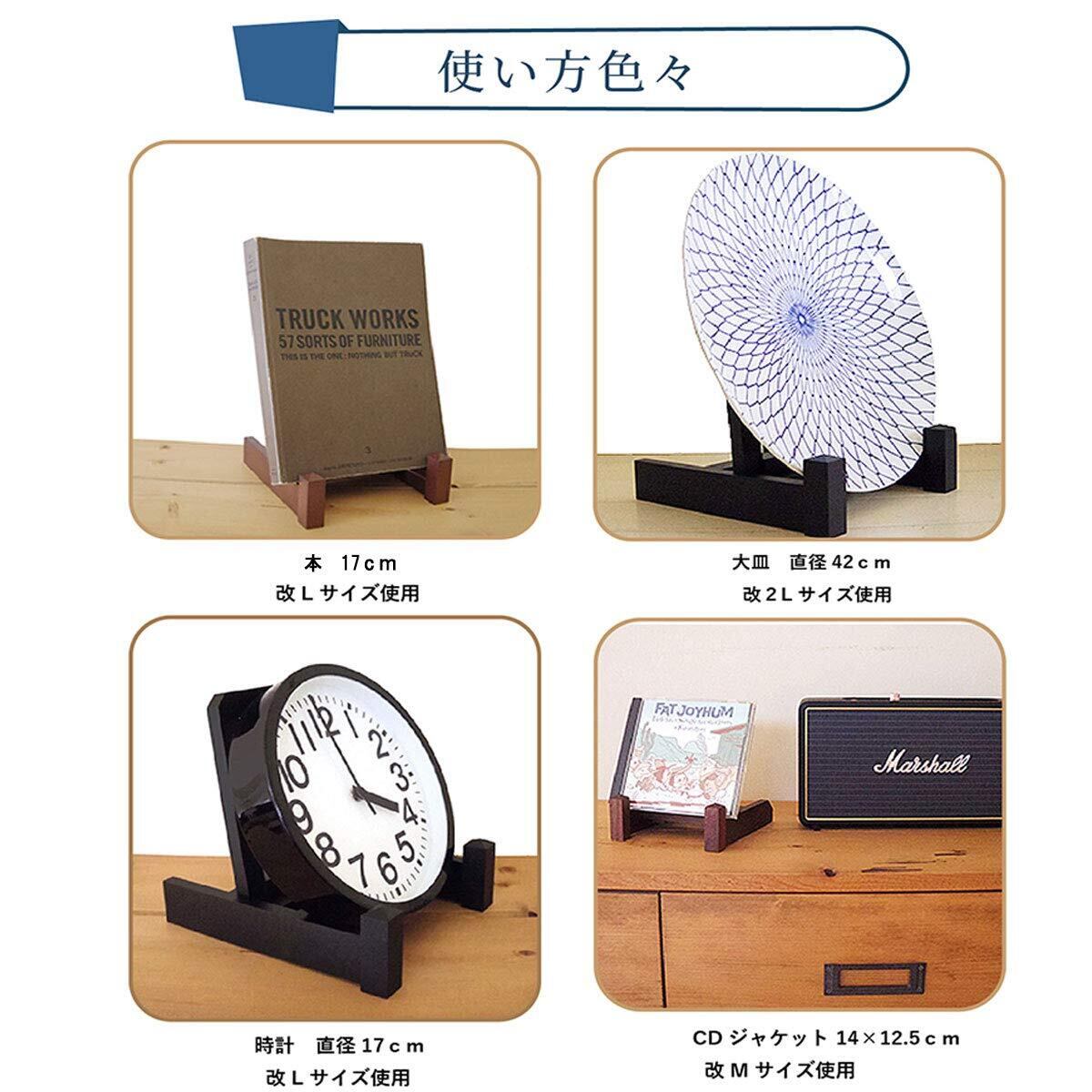 わにぞう 木製 皿立て【改】黒 2L(33cm~48cm程度の皿向け) 額縁立て 絵皿 プレートスタンド 壁掛け時計 写真 遺影 ブックスタンド 什器 絵画 陶板 飾り皿 インテリア 和モダン イーゼル 受台 大皿 中皿 小皿 (黒, 2L)